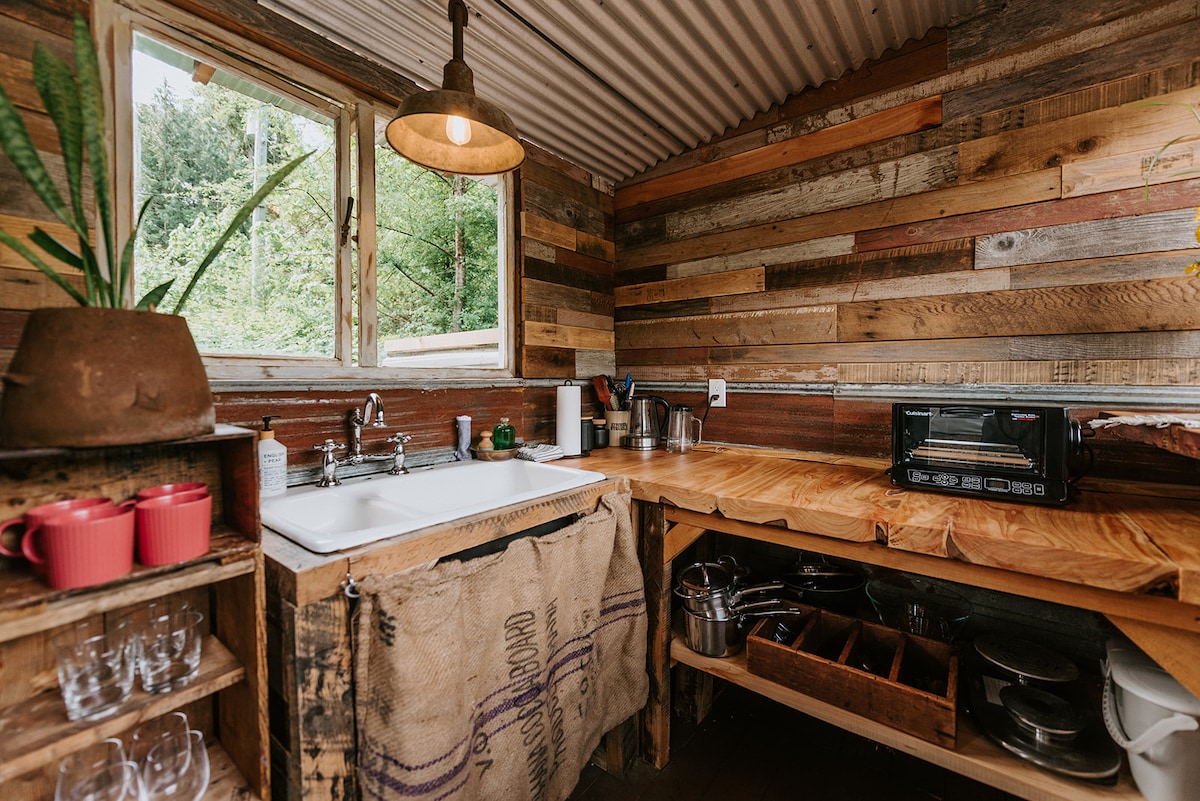 *Upozorenje o Svetskom prvenstvu* udaljeni smo samo pola sata vožnje od 2 trajektna terminala u Sijetlu. Hidden Creek Hideaway je savršeno mjesto da doživite „kampovanje”, a istovremeno možete da spavate u pravom krevetu. Nalazimo se na 4 hektara, samo nekoliko minuta od istorijskog centra Poulsba. Savršena lokacija za odlazak na Olimpijsko poluostrvo na jedan dan, obilazak okoline ili trajekt do Sijetla! Pored toga, tu je i ognjište, sudopera, grejani tuš na otvorenom, pešačka staza i toalet za kompostiranje za goste. Glamping zabava!