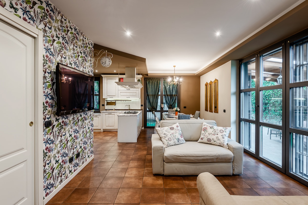U blizini jezera Komo i Milana, ovaj ekskluzivni stan zauzima cijeli drugi sprat istorijske rezidencije iz 19. vijeka, Vile Lucini 1886. Prostire se na 200 kvadratnih metara i nudi panoramski pogled koji oduzima dah na veliki, potpuno ograđeni privatni park. Bazen u obliku tenka je savršeno mjesto za uživanje u razigranom i opuštajućem trenutku u vodi. Vila Lucini je svrstana među 10 najfascinantnijih vila u okolini (pretraga: LECCOTODAY – „10 ville della provincia di Lecco“).