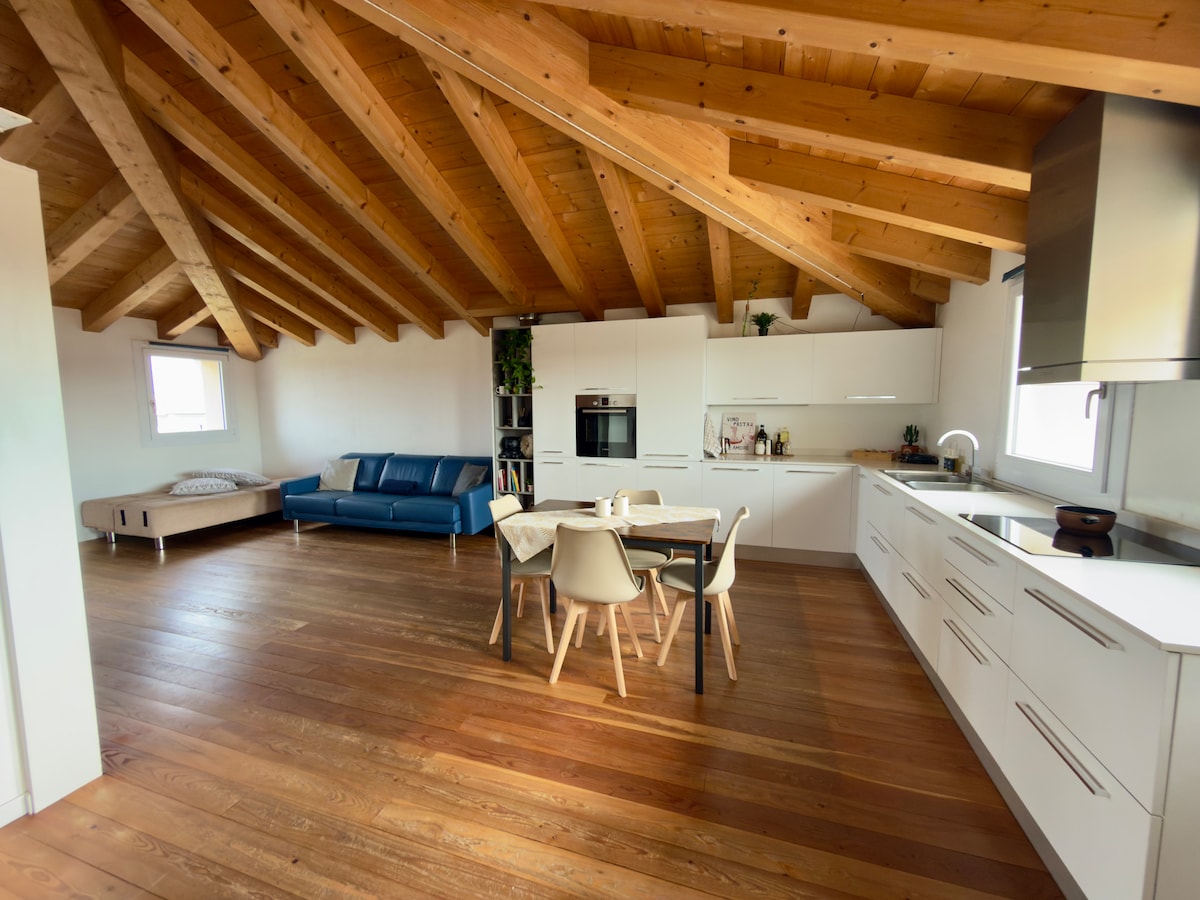 Probudite se uz pogled na planine i reku i uživajte u jutarnjoj kafi na balkonu okruženi prirodom. Ovaj topao i udoban potkrovlje otvorenog tipa je mirno utočište za parove, porodice ili prijatelje koji traže opuštanje, avanturu ili romantičan odmor. Opustite se u udobnosti i istražite prirodu odmah ispred vrata. Uz obližnje pešačke i biciklističke staze, kao i kanuing, rafting, penjanje i paraglajding na jednom od najboljih evropskih mesta, svaki dan može biti opuštajući ili avanturistički, kako god želite.