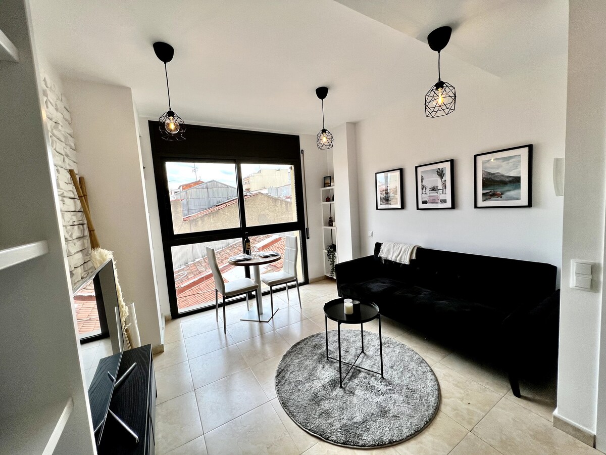 Cosy apartment near Barcelona, in the quiet city center of Sabadell. PERFECT up to 4 people (+1 baby cot). Family and kids friendly. Private lift. Is only 20 minutes to Barcelona by car and 5 minutes to 2 train station (Barcelona 30 min by train). Close to comercial area, restaurants and cinema. In summer you can relax in the apartment private terrace. Near to beach and to Circuit de Catalunya. You have all amenities, WIFI, laundry, dishwasher, Nespresso...