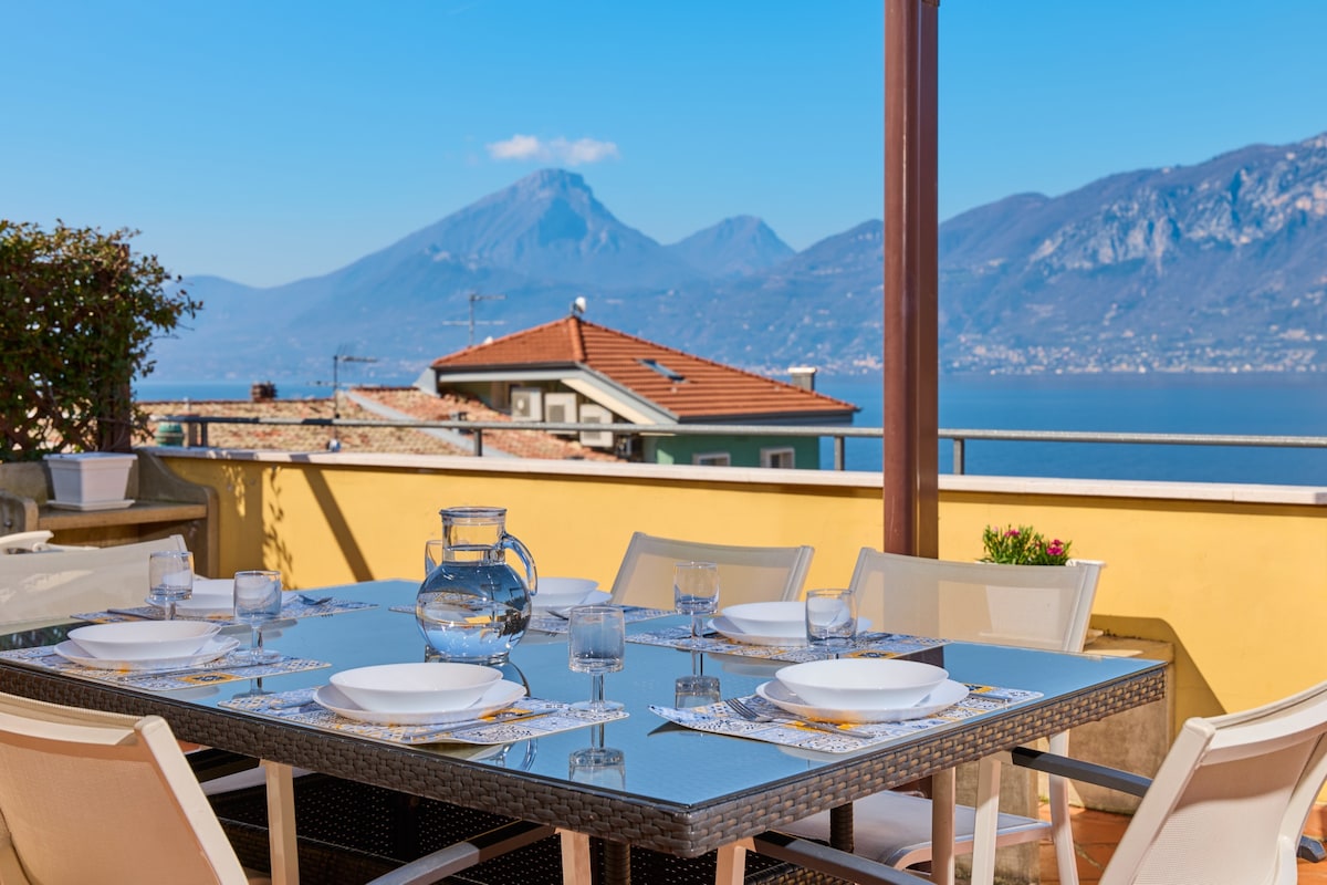 Probudite se u ovom elegantnom stanu sa pogledom na jezero Garda sa svakog prozora koji oduzima dah. Fantastična krovna terasa nudi savršenu priliku da započnete dan sunčanim doručkom, uživate u privatnom sunčanju dok posmatrate brodove kako plove i završavaju dan sa sundownerom. Osećaćete se kao da provodite odmor ne samo na obali, već i na vodi. Okružen zvukom talasa, ovaj mirni stan nudi sve što vam je potrebno da u potpunosti uživate u svom životu.