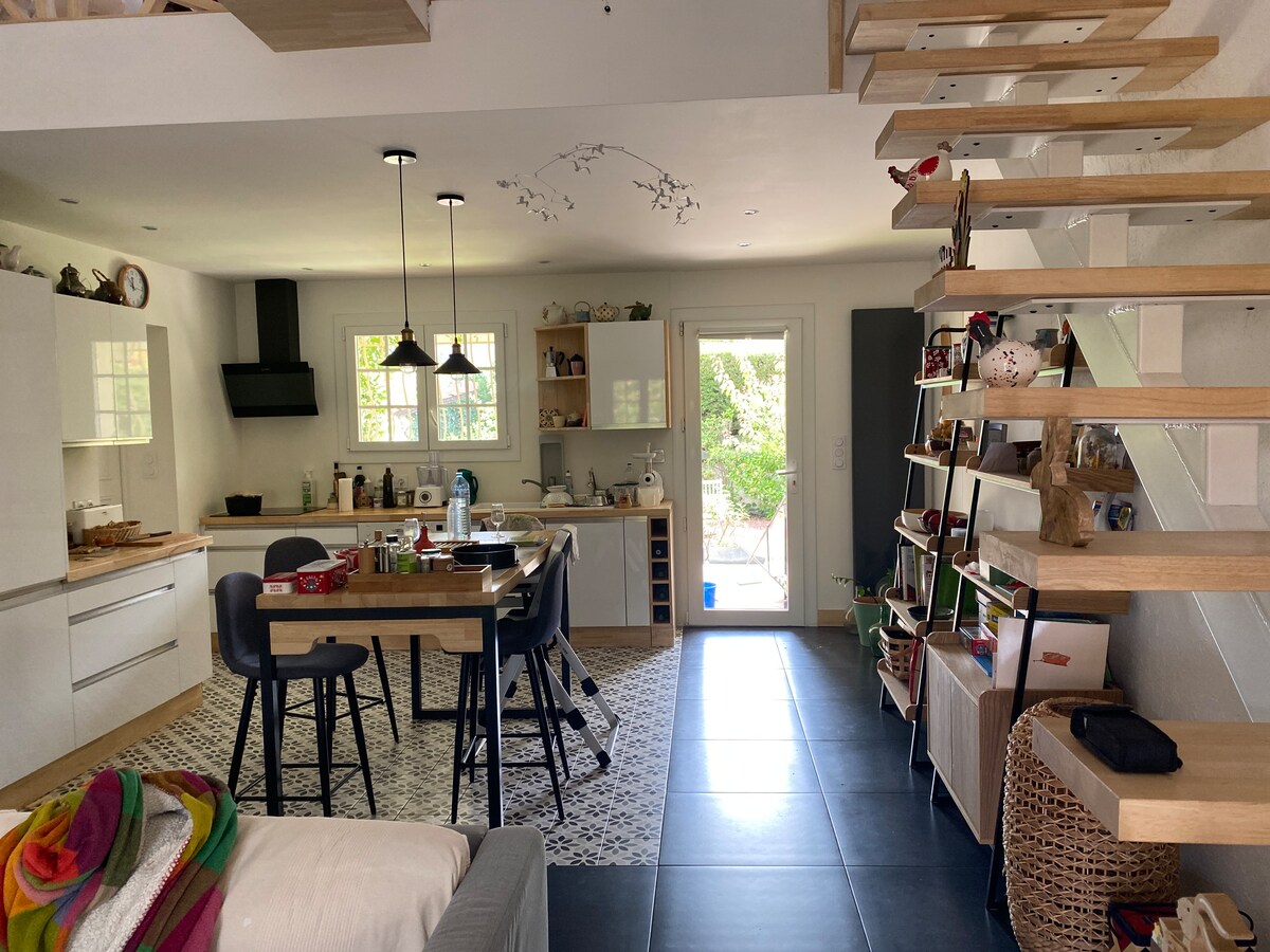 Opustite se u ovom mirnom i elegantnom prostoru. Nalazi se u Sussargues in the Hérault, u srcu vinograda i Garrigues, 25 minuta od Montpeljea i plaže, u malom selu sa svim sadržajima, ova garsonjera će vam pomoći da putujete zahvaljujući njegovoj dekoraciji. Garsonjera je povezana sa našom kućom u kojoj živimo sa naše dvoje dece. Ugodan bazen, tretiran sa soli, van vidokruga. Bašta i velika terasa.