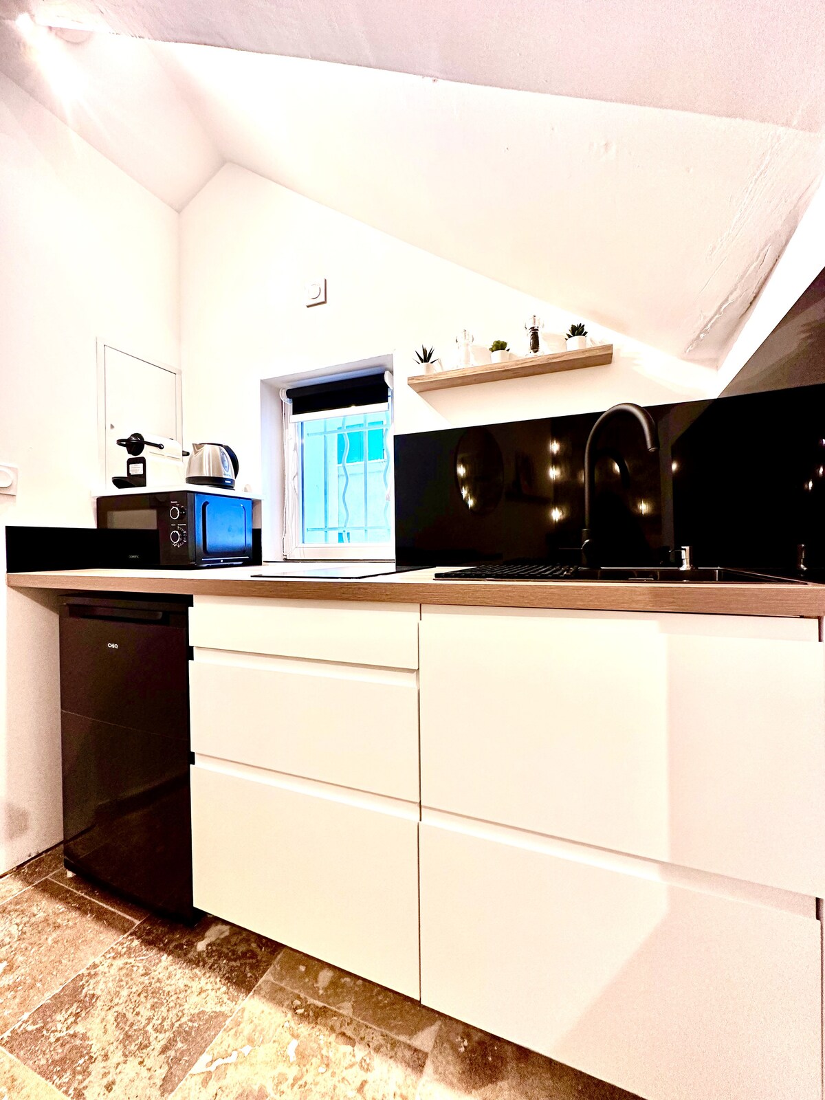 Počastite se odmorom za velnes u ovom prefinjenom studiju koji kombinuje udobnost i eleganciju. Njegov pod od sedre i umirujuća atmosfera stvaraju idealno okruženje za opuštanje. Uživajte u dvostrukom balneu za nezaboravan trenutak opuštanja. Potpuno opremljena kuhinja, Wi-Fi i moderni sadržaji upotpunjuju ovu luksuznu čahuru. Odlično za romantični odmor ili zen boravak.
