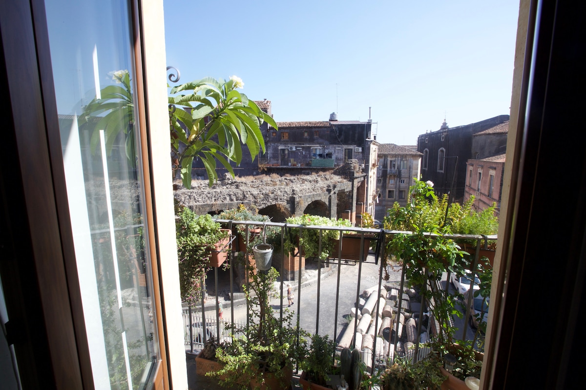 Istorijska kuća s kraja 19. vijeka, sa originalnim cementom iz tog vremena, sa pogledom na grad i glavnu Via Garibaldi sa koje se možete diviti katedrali Sant 'Agata i istorijskoj Porta Garibaldi (Fortino). Uživajte u elegantnom odmoru u ovom prostoru u centru grada, s pogledom na Duomo i Giovanni Verga's Casa Museo, cijenićete lokaciju i blizinu fantastičnog antičkog pozorišta i dvorca Ursino, kao i sve atrakcije grada Katanije!