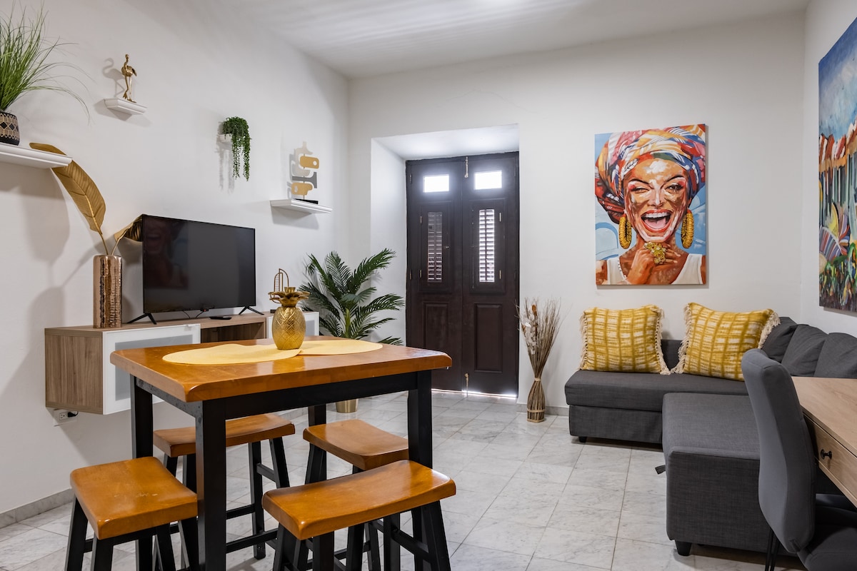 Rojo je naš apartman koji se nalazi u srcu starog San Huana. Boravak u našem elegantnom i uredno uređenom u crvenom ćete uživati u doživljaju starog grada. Naš stan je vrlo praktičan kada je u pitanju smještaj jer ima zasebnu spavaću sobu s bračnim krevetom, Smart TV u dnevnom boravku i spavaćoj sobi, namjenski radni prostor i balkon. Vrlo miran i miran stan. Budući da ste u centru, ovaj smještaj je jedan od najboljih objekata u starom San Huanu u kojem možete da odsjednete.
