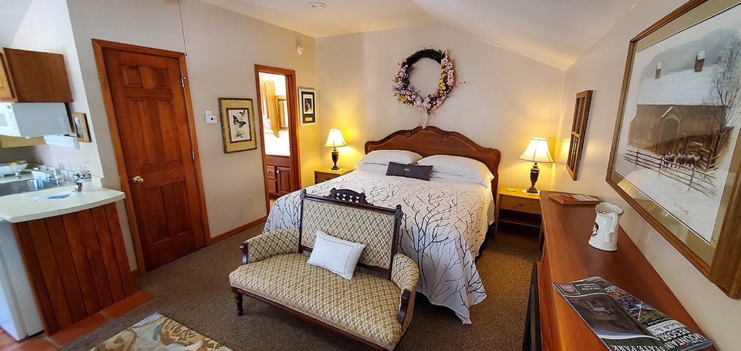 Naša seoska kuća je privatna seoska kuća iza glavne kuće koja uključuje bračni krevet, privatno kupatilo i plinski kamin . Ima čajnu kuhinju sa aparatom za kafu, mikrotalasnom rernom i frižiderom, kao i direktan pristup hidromasažnoj kadi i bazenu. Ogrtači za kupanje, Beekman Bath Sadržaji, nova posteljina, Magnavox Roku TV i poboljšani WiFi. Salon za goste na drugom spratu gde ćete imati pristup dnevnom kontinentalnom doručku, kafiću non-stop, društvenim igrama i staklenom posuđu.