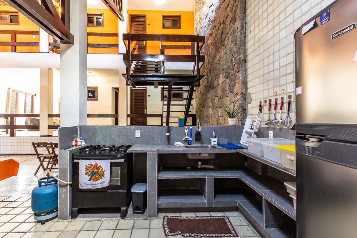 Dupleks kuća na plaži u Kumbuku, površine 900 m2. 100 metara od plaže (3 minuta hoda). Sobe sa klima uređajem i ormarićima. Bazen od 34 m2. Instalirani električni tuševi. Bezbjedna kuća. Drveni karamančo za parkiranje 2 automobila. Zelena bašta sa namjenskim osvjetljenjem. Dostupan je roštilj. Bilijarski sto, stoni tenis i stoni fudbal. Dostupni su aparati i posuđe. Udaljenost od 260 m do šatora Tabúzios, 700 m od Ronco do Mar, 210 m od pijaca i prodavnica. Struktura za potpuno opuštanje i odmor!