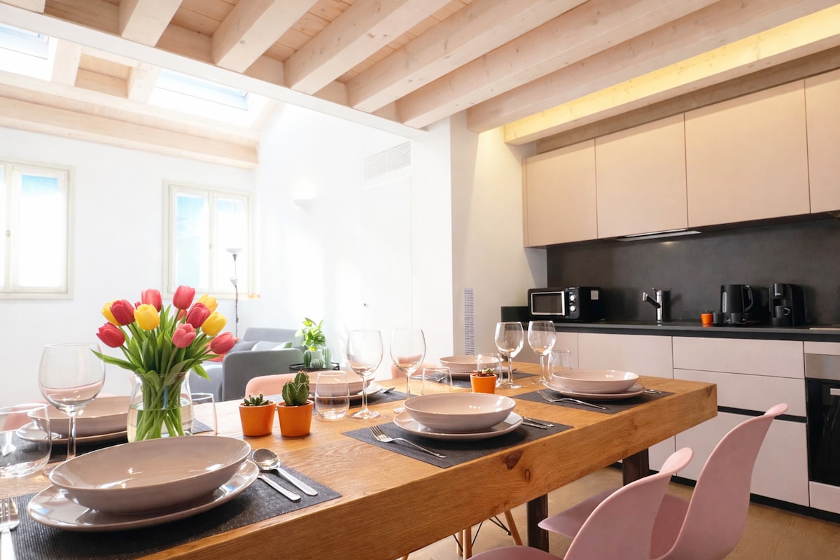 Udobno se smjestite uz knjigu, doručkujte i objedujte dok se divite nevjerovatnom pogledu na zvonike i kanale Venecije, živite kao pravi Venecijanac u najtipičnijoj četvrti Venecije nekoliko koraka od mosta Rijalto, Ca' D' or i San Marco u stanu sa namještajem i ukrasima koje su napravili venecijanski i Murano zanatlije. Osećaćete se kao da doživljavate fantastičnu atmosferu 1800-ih, ali sa svim udobnostima modernog stana. Ne propustite ovaj nevjerovatni doživljaj
