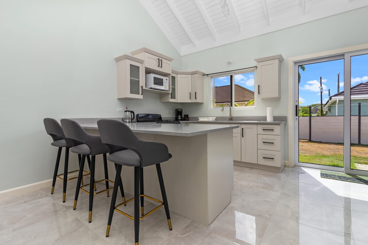 Smještena na hladnim brdima iznad Brauns Tauna, ova svijetla vila spaja udobnost unutrašnjeg prostora sa spokojem prirode. Naša prepoznatljiva natkrivena sjenica sa ležaljkom za ljuljanje stvorena je za čitanje, drijemanje ili posmatranje zvijezda; bez insekata, samo povjetarac. Unutra: 2 spavaće sobe sa bračnim krevetima (širokim 180–220 cm), 2,5 kupatila, kompletna kuhinja, TV od 75 inča, posebna kancelarija i brza Wi-Fi mreža (136 Mb/s). Spolja: ograđeni parking, lokalne prodavnice na nekoliko koraka, plaže na 15 minuta. Savršeno za parove, porodice ili osobe koje rade na daljinu, a žude za mirom, privatnošću i autentičnom Jamajkom. 🇯🇲
