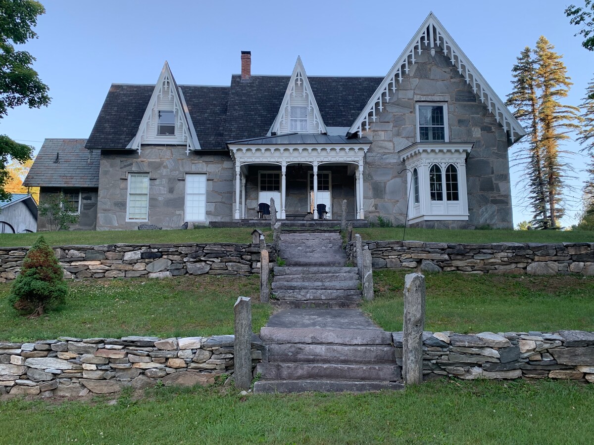 Uživajte u ovom mirnom odmoru u srcu Zelenih planina i okruženi sa više od 130 hektara privatnog šumskog zemljišta. Dramatični kameni kamin u polju i spektakularan panoramski pogled na planinu Ascutney u Nju Hempšir iz celog životnog prostora. Kuhinja velikog kuvara. Privatni glavni apartman i dve spavaće sobe za goste. Savršen odmor za opuštajući sa porodicom i prijateljima. Izuzetne avanture za pešačenje, vožnju biciklom i reku Konektikat. U blizini GMHA i Vudstoka. Odlični restorani, zabavna seoska kupovina u blizini.