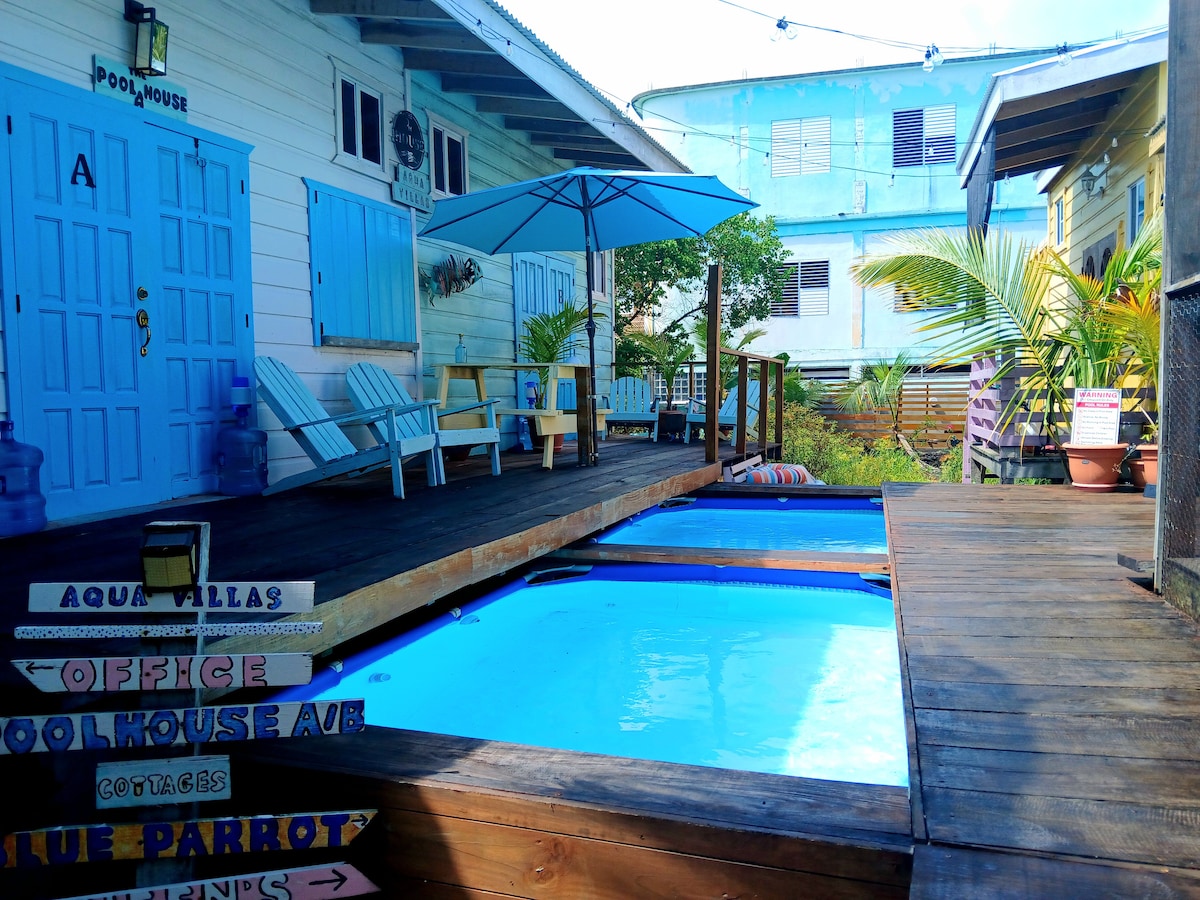 Apartman Pool House nalazi se u jednoj od najljepših ulica u Caye Caulkeru. Pogled se pruža na prelijepe vrtove i hladan privlačan bazen. To je jedini smještaj u objektu u vrlo privatnoj i mirnoj četvrti - samo nekoliko minuta (5) vožnje do grada. Preko puta je restoran za doručak i večeru. Objekat je priključen na električnu energiju sa ostrva, ali ima i solarnu energiju i električni generator za rezervu. Svi gosti na Airbnb-u moraju da imaju najmanje 25 godina.