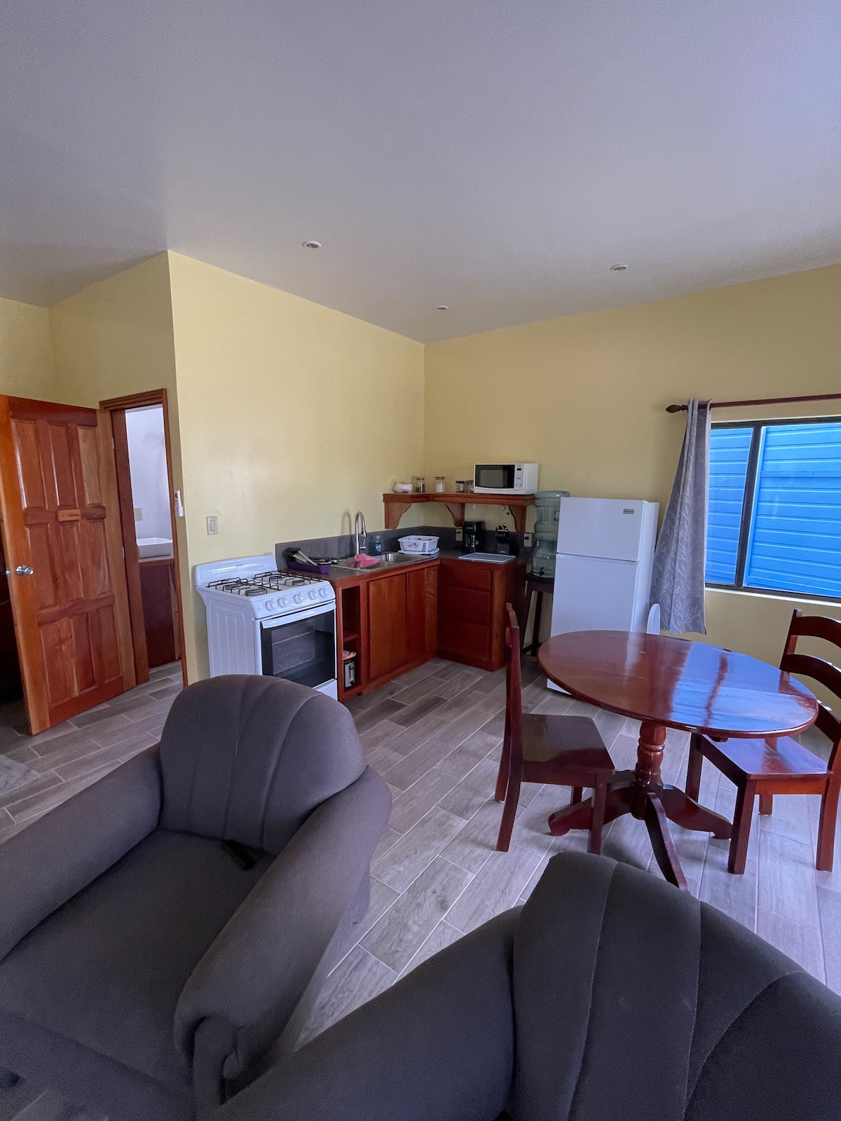 Naš stan na 1. spratu ima neverovatan pogled na okean sa severne strane Kaj Kajkera. Dvosoban stan sa 2 kupatila direktno na Karipskom moru... Imamo Wi-Fi u celom stanu i Netflix prijavljen. Naša potpuno opremljena kuhinja ima aparate od nerđajućeg čelika, frižider sa ledomatom i filtriranu pitku vodu. Spoljašnja terasa ima dva udobna ležaljke i 2 viseće ljuljačke za uživanje od izlaska do zalaska sunca. Ovo je zaista luksuzni doživljaj koji je bez premca na Caye Caulkeru.