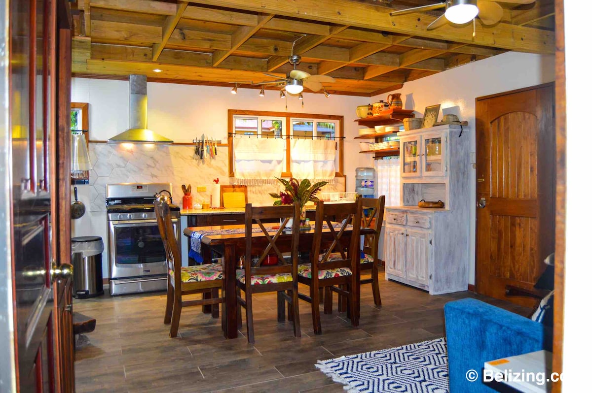Potpuno novi bungalov uz reku sa terasom sa pogledom na reku. Savršeno mesto za opuštanje i opuštanje. Uživajte u svim sadržajima i udobnosti doma u privatnom okruženju, nedaleko od grada San Ignacio. Predivan otvoreni koncept, sa bračnim krevetom i kompletnom kuhinjom. Francuska vrata se otvaraju prema terasi sa pogledom na reku.