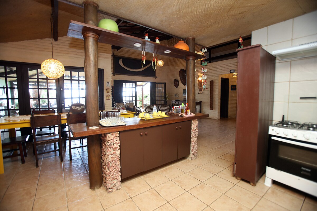Ponosno iznajmljujemo našu kuću za odmor u Praia de Redonda, Icapui. Nalazi se, odmah iznad plaže, sa spektakularnim panoramskim pogledom na okean. Mirna lokacija u direktnom kontaktu sa prirodom, da se opustite i napunite baterije. Naša kuća se nalazi na ogromnoj bašti od 530 m² sa palmama, voćkama i visećim ležaljkama koje vas čekaju. Samo 10 minuta hoda od plaže niz brdo. Obezbeđujemo čistu posteljinu, peškire, potpuno opremljenu kuhinju i privatni parking za vaš automobil.
