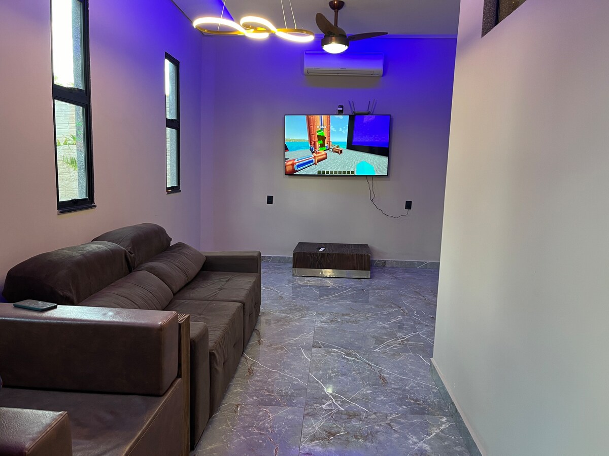 Jednostavna i udobna kuća Spavaće sobe sa klima-uređajem od 12.000 Btu, 1 Q/F. Bračni krevet, dva kreveta za jednu osobu,+01 dušek za jednu osobu 1 kupatilo, sa tuš kabinom Kauč na razvlačenje 2,50 x 1,0 (otvoren) Kuhinja opremljena priborom Plafonski ventilator, u spavaćim sobama i dnevnoj sobi Mašina za pranje veša od 16 kg Internet 500 MB Elektronska kapija Interfon sa kamerom Garaža 02carros Bazen Pokriće u pozadini je nedavno napravljeno Brz pristup lokacijama Leroy, Carrefour i Max Muffato. U blizini kuće nalaze se pijace, pekara, grickalice, ćevapi i teretana.