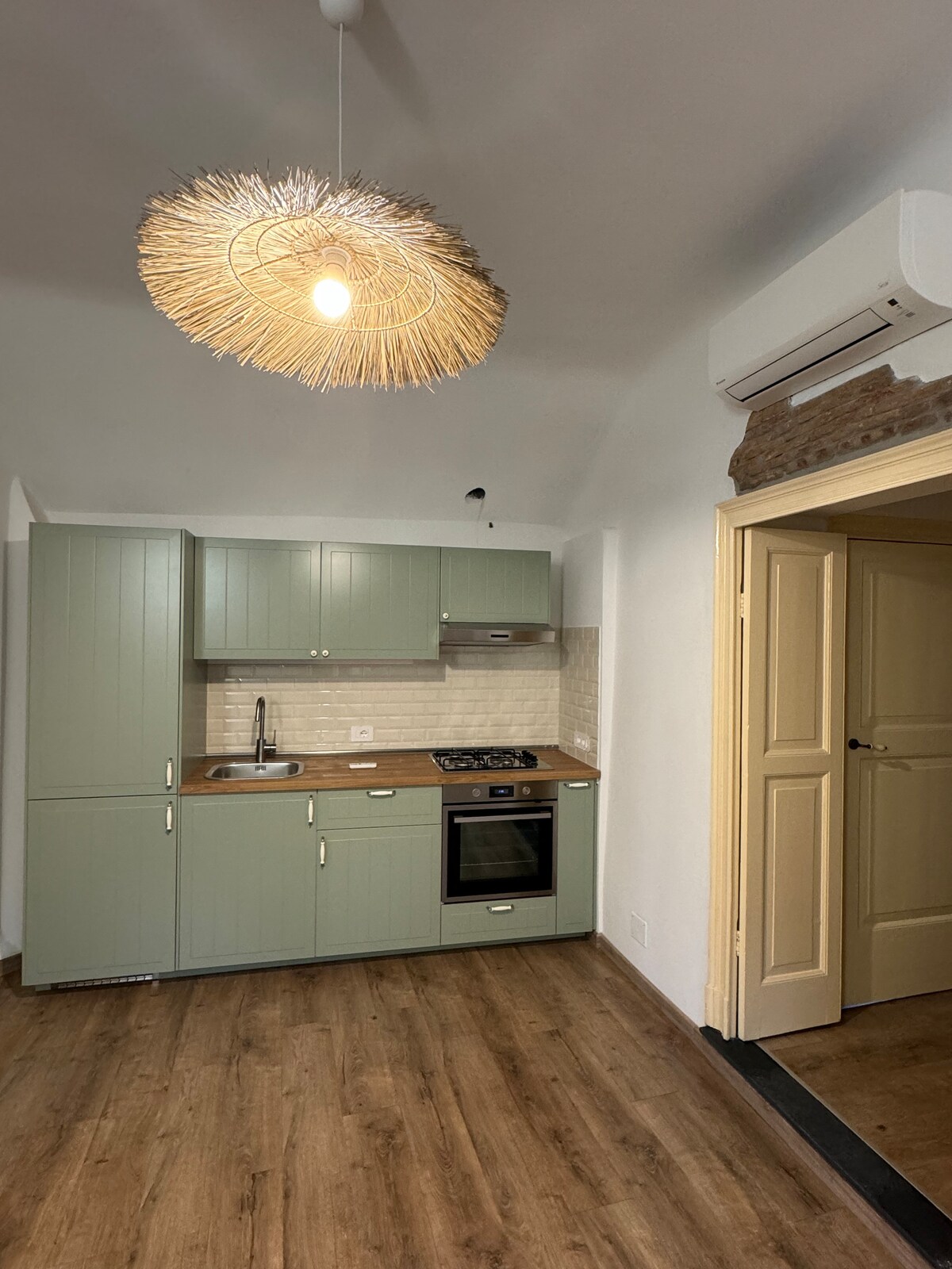 Novouređeni stan nalazi se unutar veličanstvene secesijske kupole dizajnirane 1906. godine koja se uzdiže iznad glavne gradske ulice, na samo 5 minuta hoda od stanice Brignole i Pjaca De Ferari, okružen privatnom panoramskom terasom sa biljkama, cvijećem i esencijama. Stan se sastoji od dnevnog boravka, mezanina sa bračnim krevetom, kuhinje, kupatila sa velikim zidanim tušem, hodnika, visokih plafona i lučnih prozora. CIN IT010025C2UWZNVKDY CITRA 010025-LT-3951