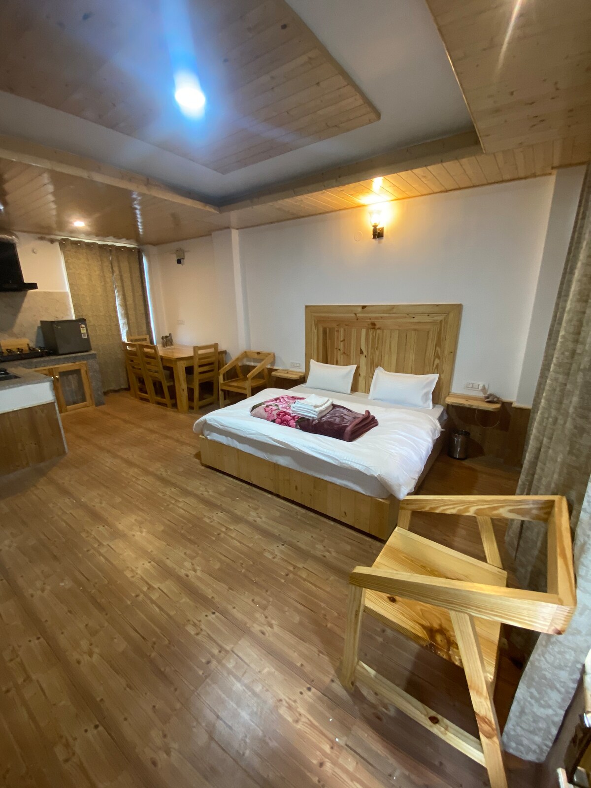Relax with the whole family at this peaceful place. Tucked away in a lush apple orchard at Rangri Homestead, this peaceful 2-bedroom home offers a serene escape from the Manali crowds. Breathe in fresh mountain air from your private balcony or relax in our tranquil garden. It’s a safe, cozy Home away from home where your family can reconnect with nature. Perfect for a restful, authentic Himalayan getaway. Away from the city Crowd. Heaters are chargable basis