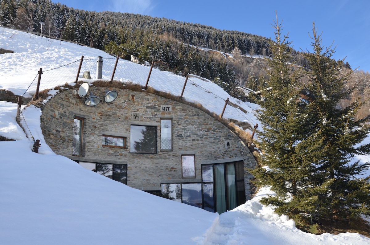 Ukopana zemljana kuća na planini sa velikom terasom. Pristup kući je kroz prolaz iz obližnje stabilne kuće. Arhitektonski neobična kuća opremljena je internacionalnim dizajnerskim elementima i nudi sve sadržaje kao što su velika kuhinja sa stolom za 10 osoba, Wi-Fi, TV, sto za bilijar, hidromasažna kada na terasi i još mnogo toga. Vila Vals je dosegla međunarodnu slavu kroz seriju „Najspektakularniji domovi na svetu“.