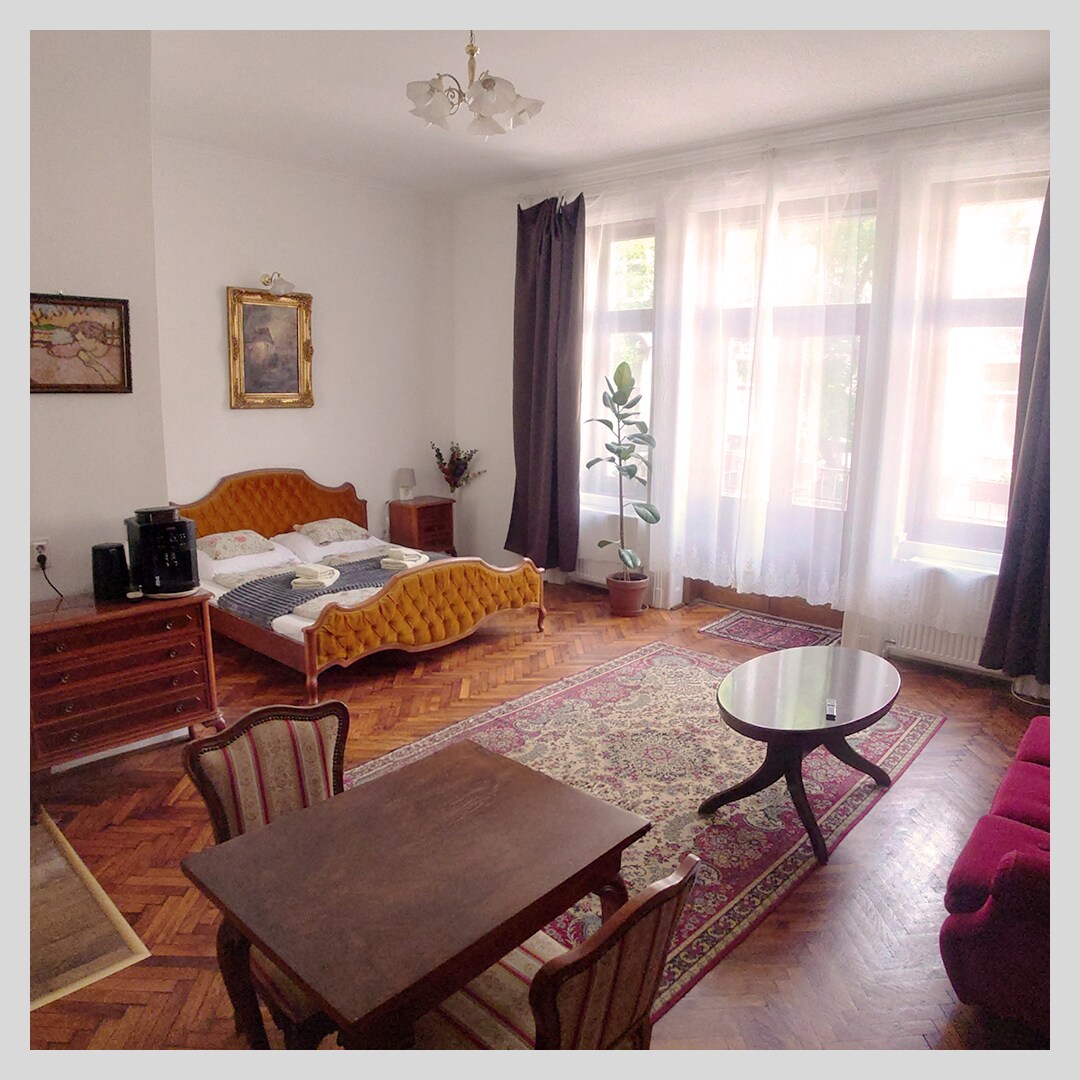 Velez Ház offers nine uniquely styled, comfortable apartments in the heart of Budapest, in the 7th district. It boasts a quiet yet central location, just a few minutes’ walk from Keleti Railway Station and Városliget (City Park).
