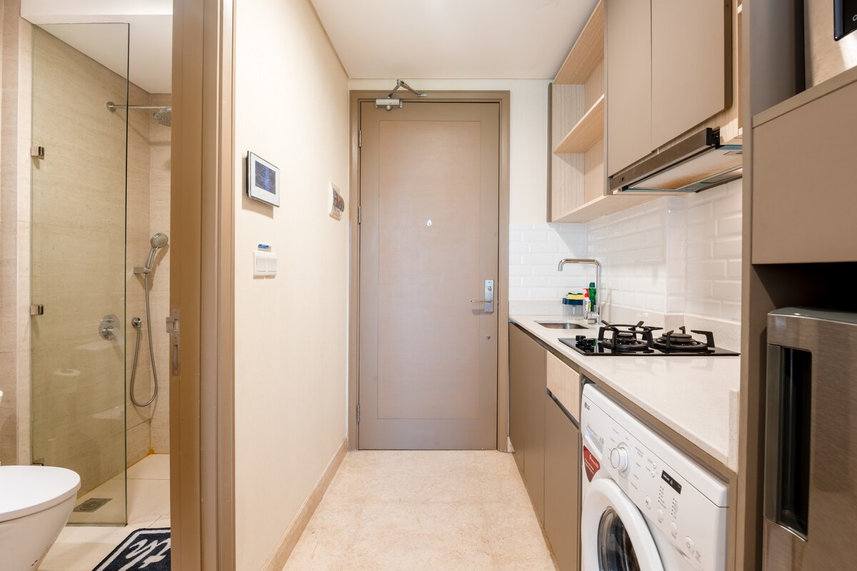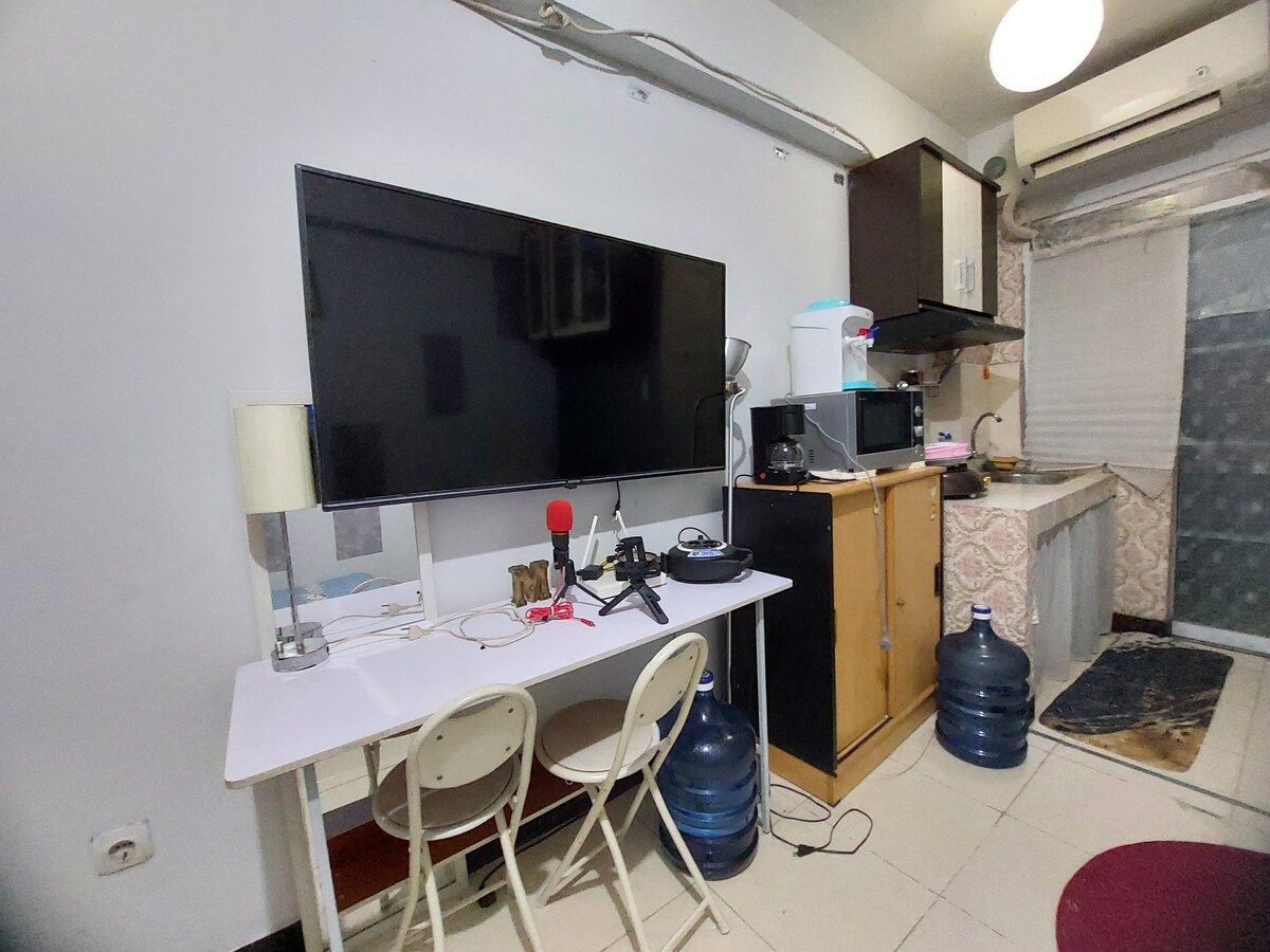 Udoban studio u stanu Maplepark u blizini JIEXPO-a, Ancol i Sunter područja, uživajte u našem brzom internetu do 150 Mbps, pametnom televizoru s besplatnim Netflix-om, mikrotalasnom pećnicom, tušem s toplom vodom i dispenzerom za pitku vodu, a na raspolaganju vam je i radni sto sa kancelarijskom stolicom. Obližnja hrana/namirnice dostupne su u minimartu i kantini u predvorju. Uživajte i u našem fleksibilnom postupku prijave/odjave.