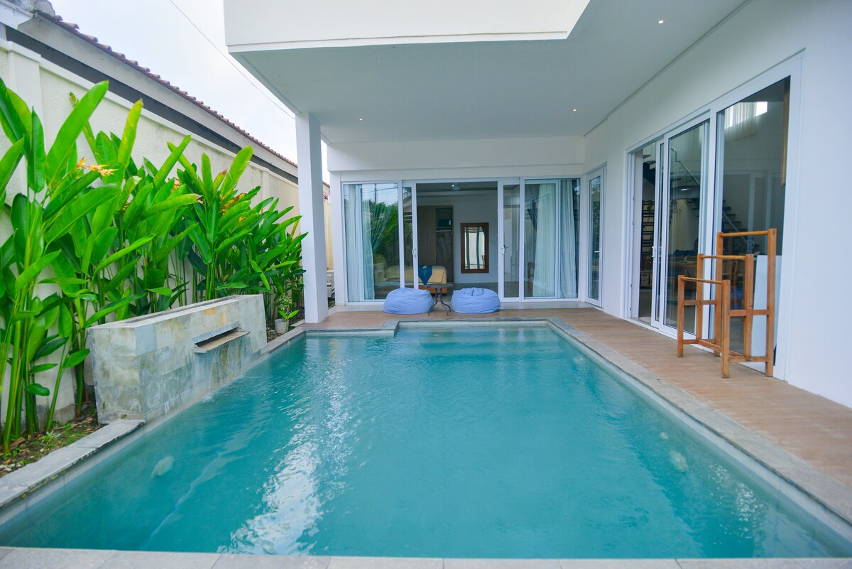 Luksuzna vila sa 3 spavaće sobe u Kuti, Lombok – elegantna, prostrana i centralna. Uživajte u privatnom bazenu, dnevnom boravku otvorenog tipa, brzom Wi-Fi mrežom i tri spavaće sobe sa modernim dizajnom. Savršeno za digitalne nomade, surfere i porodice. Prošetajte do najboljih kafića, restorana i prostora za zajednički rad u Kuti, a samo nekoliko minuta od staze Mandalika i plaža svjetske klase. Savršen spoj udobnosti, stila i lokacije – vaš rajski odmor na Lomboku vas čeka.