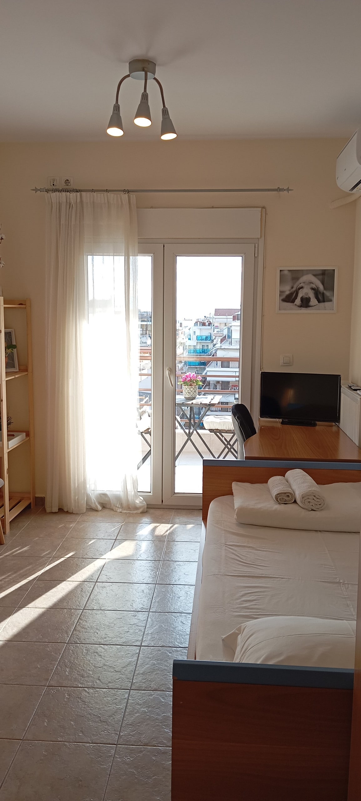 Moderan i pametno dizajniran studio u srcu društvenog života Soluna. Idealno za parove, samce ili poslovne putnike Velika brzina, internet, visokokvalitetni dušek, Nespresso aparat i Netflix. Mašina za pranje/sušenje veša, pegla i daska za peglanje. Samo 2 minuta od obale i luke, i na pet minuta od trga Aristotelous.