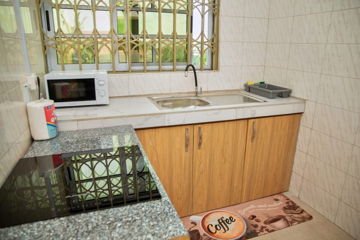 Relax with the whole family at this peaceful and exciting place to stay. The apartment comes with a balcony relaxation, free wifi, air conditioning, outdoor pool, outdoor sitting area. 30mnt drive to the beachside and close to one of the biggest shopping Malls in West Africa, THE WEST HILLS MALL.