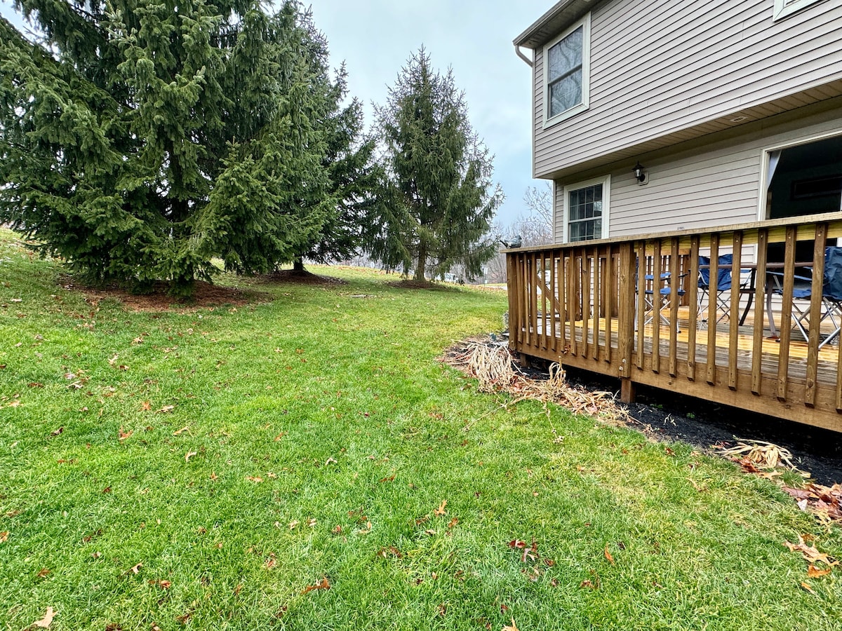 Dobro došli u naš otmjeni State College Retreat, smješten u prestižnoj četvrti u srcu rodnog grada Penn State University. Idealno za gurmanske kuvare, ljubitelje fudbala, porodice, poslovne putnike, učesnike konferencije i one koji traže stil i udobnost. Naš punjač za električna vozila će održati vaše električno vozilo spremnim za istraživanje. 7 minuta do stadiona Biver, prošetajte do psu stazom i u blizini restorana u centru grada.