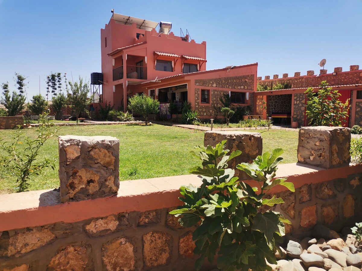 Dobro došli na našu porodičnu farmu koja se nalazi u srcu Maroka, utočištu mira za ljubitelje prirode i autentičnosti. Ovdje ćete biti okruženi životinjama i poljima pažljivo obrađenim u skladu sa godišnjim dobima. Probudite se uz pjesmu ptica i uživajte u potpunom miru daleko od vreve i vreve gradova. Naša farma je idealna za opuštanje sa porodicama, parovima ili grupama prijatelja. Posvećeni smo tome da sa vama podijelimo ovu jednostavnu i toplu seosku kuću.
