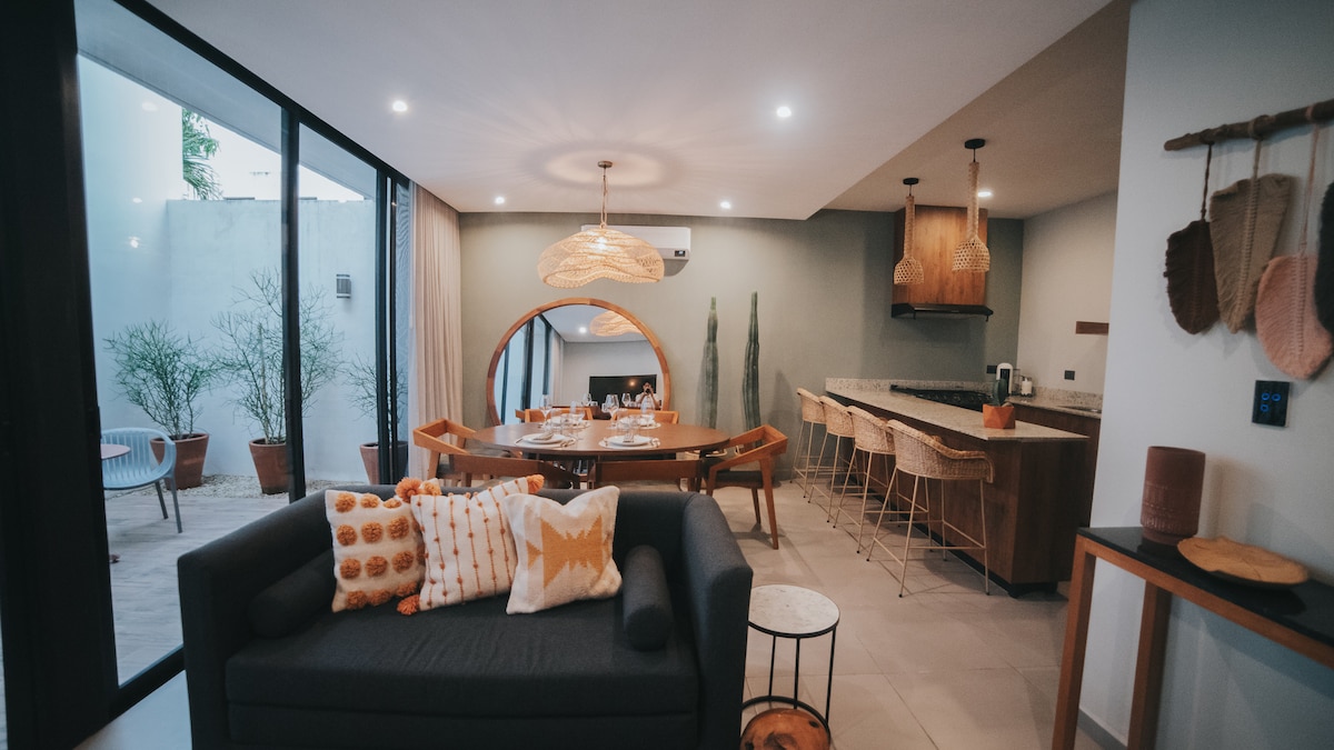 Casa Luna Nueva je zapanjujuća dizajnerska vila koja spaja istorijski šarm s modernim luksuzom, samo nekoliko koraka od trga Plaza Santjago . Sa visokim plafonima od 18 stopa, tri prostrane spavaće sobe, profesionalnom kuhinjom, bazenom za plivanje, salonom na krovu i umjetničkim djelima, ovo privatno utočište je savršeno mjesto za odmor u Meridi. Dizajniran od strane nagrađivanog arhitekte, a preimenovan od strane međunarodnog umjetnika, to je pravo utočište u srcu grada.