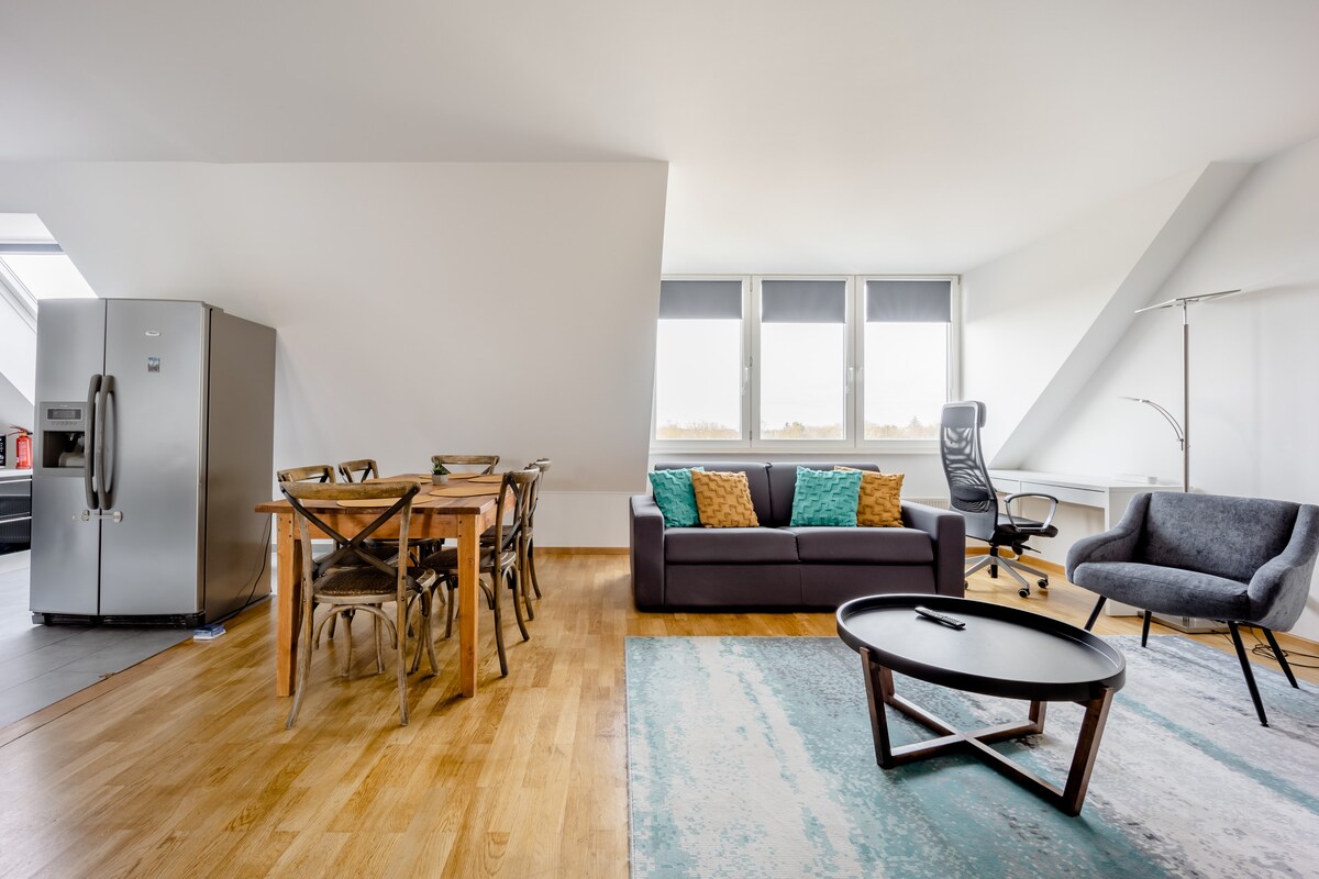 Potpuno namješten stan visokog položaja koji se nalazi odmah do centra Luksemburga. Ima dnevni boravak sa 1 spavaćom sobom (13m²), prostranim stambenim prostorom (25m²), balkonom (5m²), otvorenom potpuno opremljenom kuhinjom i kupatilom. Na raspolaganju su vam opremljena vešernica po spratu i 2 lifta. Dobar pristup aerodromu i drugim lokacijama. Javni prevoz je udaljen 200 m. Brzina WI-FI MREŽE do 1 GB.