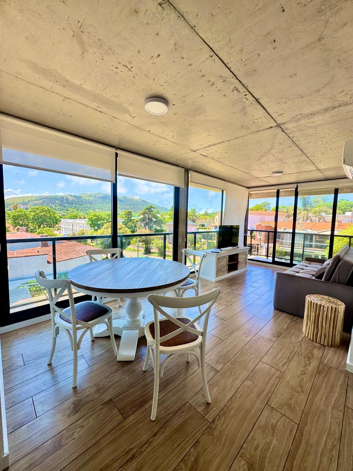 🌊 Uživajte u stanu uz plažu u Edificio Sansetu sa zadivljujućim pogledom na luku i Cerro San Antonio. Savršeno za odmor ili odmor. 🛏️ Spavaća soba s bračnim krevetom i ormarom 💦 Grijani bazen s hidromasažnom kadom ❄️ Klima-uređaj u obje sobe 🛋️ Dnevni boravak sa sofom na razvlačenje 📺 Smart TV, DirecTV i Wi-Fi 📚 Knjige i igre 🚗 Natkriveni parking 🧹 Usluga čišćenja 🛡️ Bezbjednosne kamere