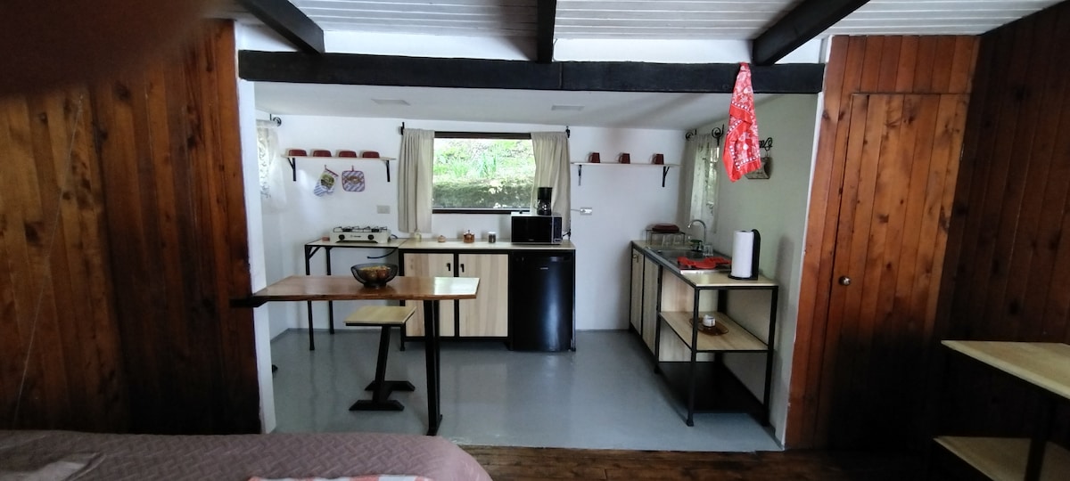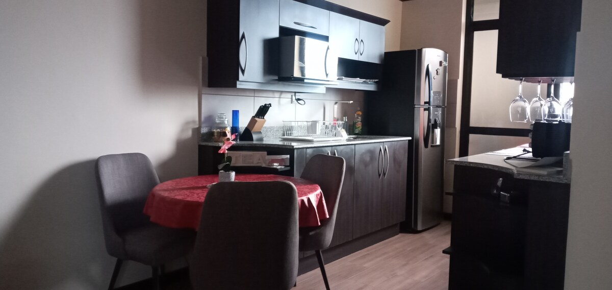 Uživajte u udobnosti ovog mirnog i nezavisnog smještaja, ispred Interplaza Xela. Možete da se odmorite ili radite u okruženju u samoći ili sa više ljudi, ima opremljenu čajnu kuhinju, trpezariju za 4 osobe, dnevni boravak (kauč na razvlačenje) sa zabavnim sadržajima (TV od 43inča, Wi-Fi, Netflix i društvene igre) i spavaću sobu sa bračnim krevetom, radnim stolom, ormarom i udobnim kupatilom sa toplom vodom. Besplatan bezbjedan parking za najviše 4 vozila.