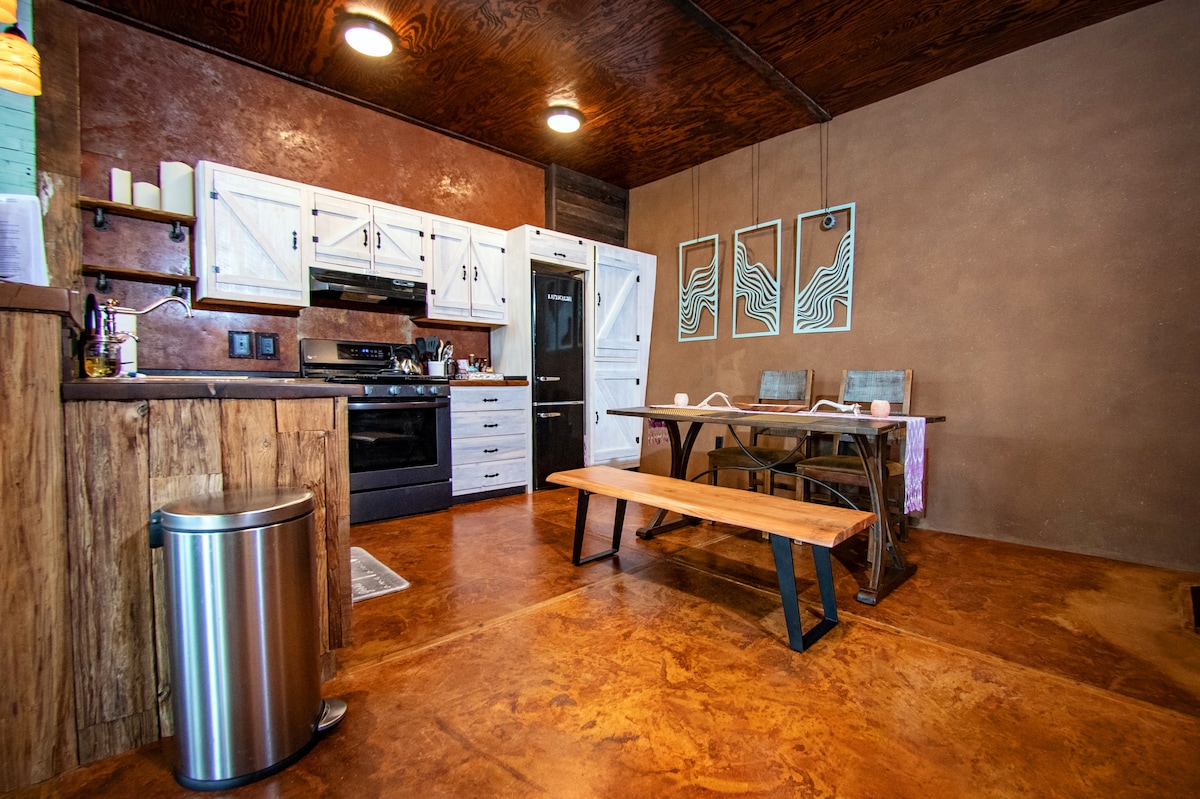 Smješten na 30 hektara privatnog zemljišta na zapadnom rubu grada, Taos Skybox „Stargazer" je jedinstveni doživljaj doma za odmor, izgrađen kako bi iskoristio tamno nebo i beskrajne poglede na pejzaž visoke pustinje. Smešten na visini od 7000 metara nadmorske visine, pogled je u izobilju, dok vaše utočište graniči sa izvornim zemljištima Taos Pueblo, a ipak je samo 15 minuta udaljeno od Taos Plaza. Zaista nezaboravno odredište, Stargazer je moderan i dobro opremljen kompletnom kuhinjom, vešom i internetom sa fiberima!