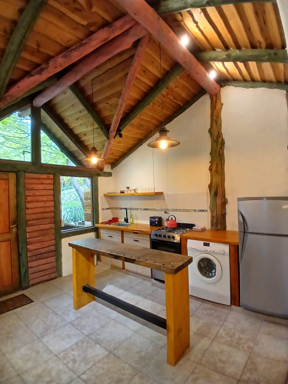 Brvnara na planini Piltrikitron, sa vrtom od pola hektara, samo 11 minuta od centra El Bolsona (5,1 km). Panoramski pogled na dolinu i veličanstveni planinski lanac Andi koji dominira horizontom. Unutrašnjost brvnare je uređena u rustičnom i udobnom stilu. Ima dnevnu sobu sa kaminom, potpuno opremljenu kuhinju, dva kupatila sa WC-om i dvije spavaće sobe. Veoma dobra internet veza i klima-uređaj u svakoj sobi.