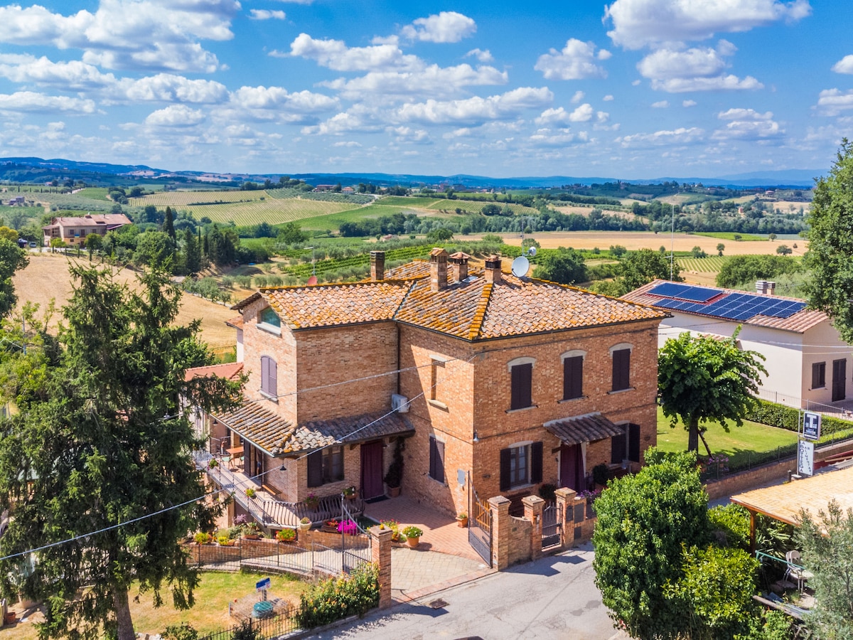 Vaše privatno toskansko utočište između Pience i Montepulćana. Prostran apartman od 100 m² za dvije osobe, s ekskluzivnim pristupom, velikom privatnom baštom i pogledom na brda Val d'Orcia koji oduzima dah. Elegancija, mir i autentičnost – samo vi… i Toskana.