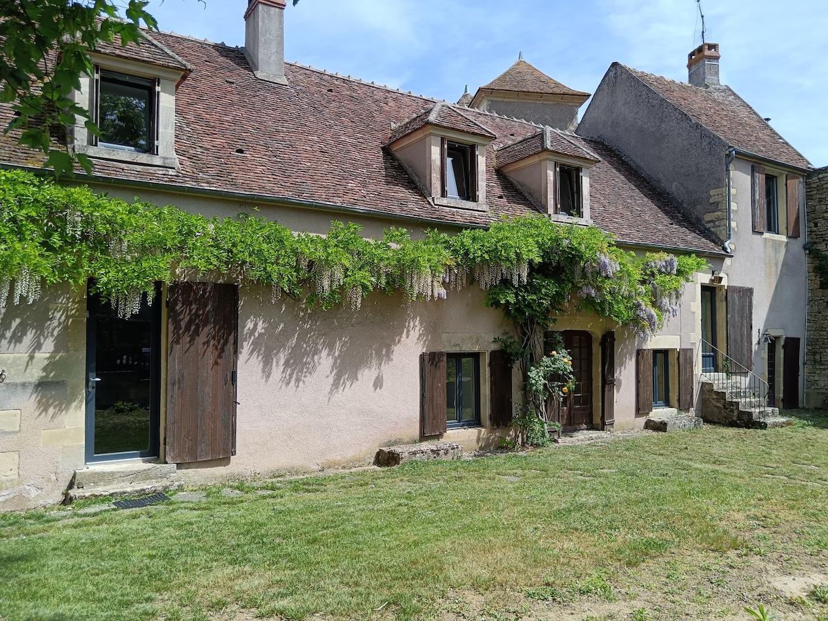 Prijatna mala kuća sa veličanstvenim pogledom i velikom terasom u malom selu Bourguignon 30 minuta od Vezelaja i 45 minuta od Neversa. Opuštajuće okruženje, mnogo pešačkih staza. Prodavnice na 2 km. Imajte na umu da se smještaj nalazi na spratu i da nema zemljište, ali ima prijatnu i prostranu terasu.