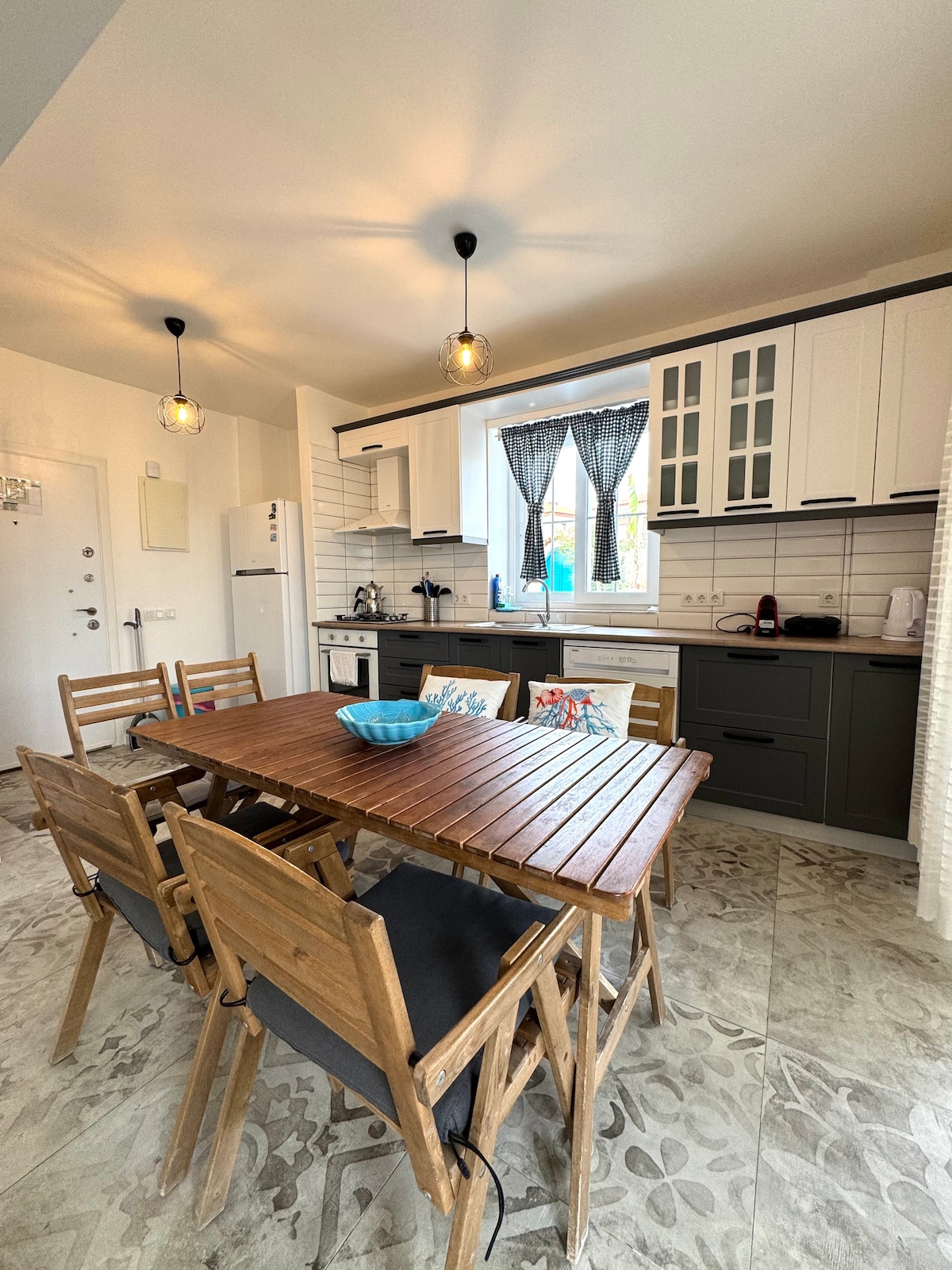 Udaljenost od centra Češme i minibusa za Alačati je 5 10 minuta hoda do marine, 15 minuta hoda do plaže Tekke, veoma jednostavan pristup u svakom pravcu, jednostavan, ali udoban luksuzni stan na prvom spratu sa balkonom i terasom. Ako želite da provedete miran odmor, pogodan za zabavu i opuštanje, rado vas čekamo. (Pušenje u zatvorenom prostoru je strogo zabranjeno) Hajde da održavamo naš dom čistim!
