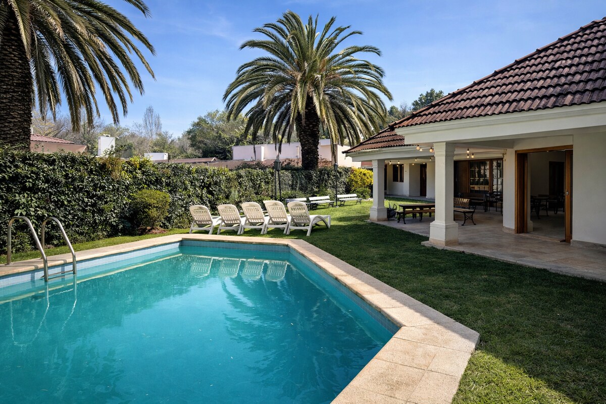 Casa exclusiva en barrio cerrado en Chacras de Coria. Jardín, pileta climatizada disponible todo el año y fogonero parrilla para el mejor asado mendocino. 🏡 4 hab · 3 baños · Habitaciones configurables ✅ Wifi · AC frío/calor en toda la casa · Losa radiante · Cocina equipada · Estacionamiento techado · Check-in autónomo 📍 A 3 min de Chacras Park · 20 min del centro de Mendoza ⭐ 4,96 · +138 reseñas · Superanfitrión