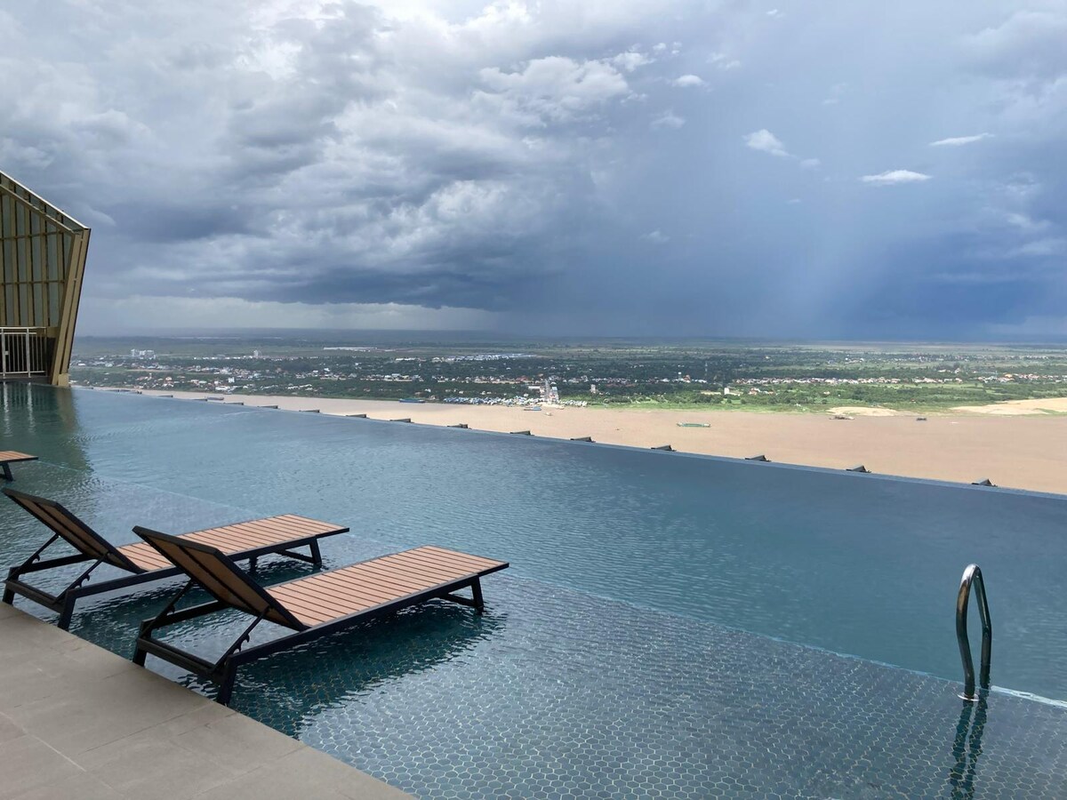 Ce logement est unique à Phnom Penh un immeuble PENTHOUSE RÉSIDENCE 5 étoile de 43 étage avec une beauté sans nom avec tous les services 24h sur 24h sécurité totale caméra ultra sécurisé. Idéal pour 2 adulte et 1 enfant Il y a une épicerie ouverte toute la nuit H24 1 restaurant CÉLESTE qui tourne a 360 degrés , Skybar restaurant japonais, piscine à débor Mon appartement est au 25 étage avec une super belle vue sur toute la ville
