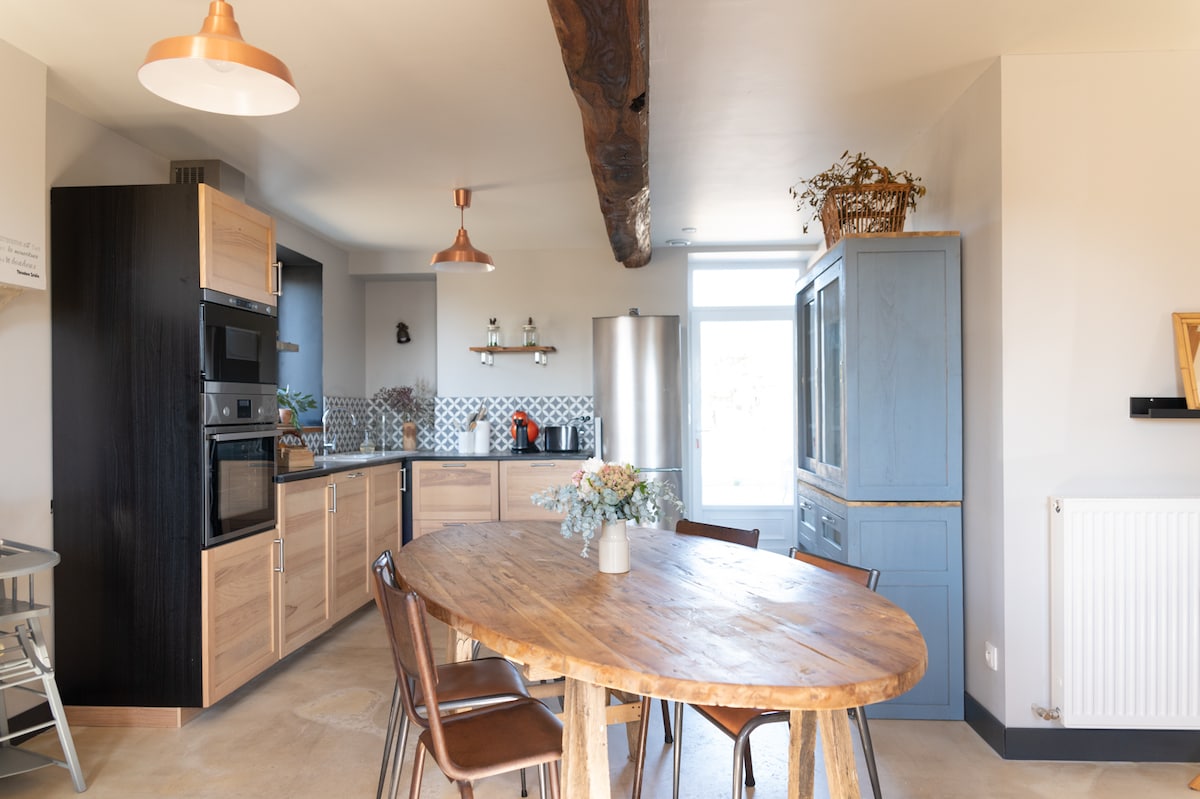Šarmantna seoska kuća za porodični odmor, sa prijateljima ili za romantični vikend. South of Burgundy, on the edge of the Allier and the Saone and Loire, come and spend a stay in La Maison Lili Bohême, a small independent farmhouse fully renovated and decorated in a chic bohemian style. Na selu, usred polja, naša kuća za odmor nudi vam opuštajući i podmlađujući boravak. Predlog kreativnog kursa: šivenje, bojenje povrćem i drugo sa vlasnikom.