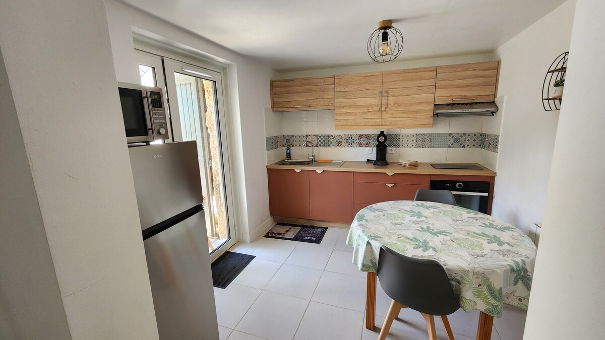 Renovirana garsonjera od 32 m2 u srcu sela sa nezavisnim ulazom i pristupom unutrašnjem dvorištu sa trpezarijom. Potpuno opremljena kuhinja, soba za tuširanje sa tušem. Dnevna soba sa prostorom za spavanje (140 kreveta). Stan za nepušače Smještaj je pješke do prodavnica: pekare, mesnice, prodavnice mješovite robe. Posteljina nije obezbijeđena za boravke duže od 15 dana. Za pristup smještaju potrebno je nekoliko koraka.