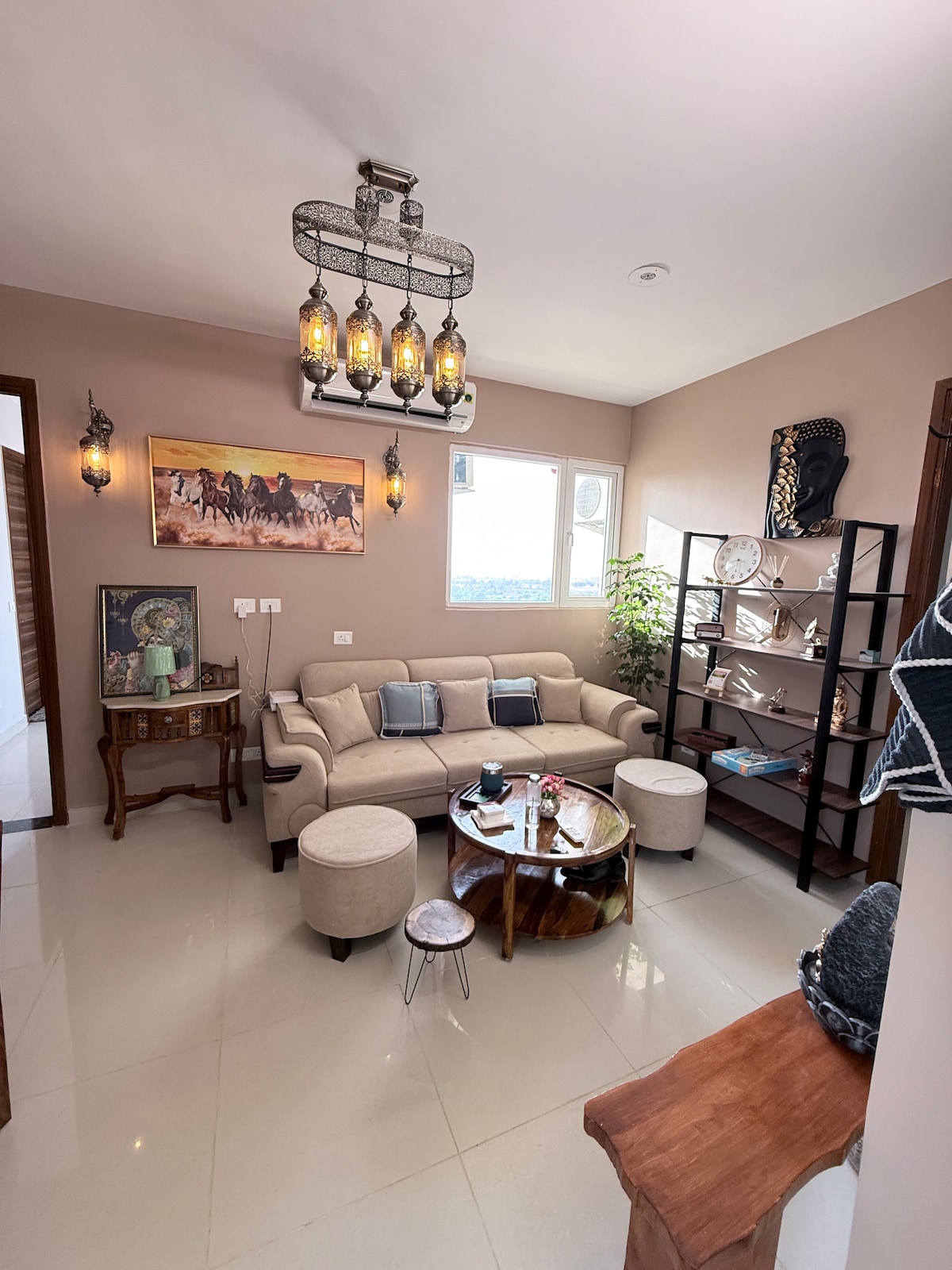 Zakoračite u prostor u kojem se zemljani šarm susreće sa modernom udobnošću. Smješten u mirnoj ograđenoj četvrti prikladnoj za porodice, 1 BHK stan je dizajniran za spor život, kreativnu atmosferu i toplo gostoprimstvo. Smješten na 2. spratu, stan je natopljen prirodnim svjetlom i ukrašen toplom paletom od terakote, enterijeri su ispunjeni ručno izrađenim dekorom, rustikalnim drvenim teksturama, starinskim nalazima i originalnim umjetničkim djelima pažljivo odabranim kako biste se odmah osjećali kao kod kuće.