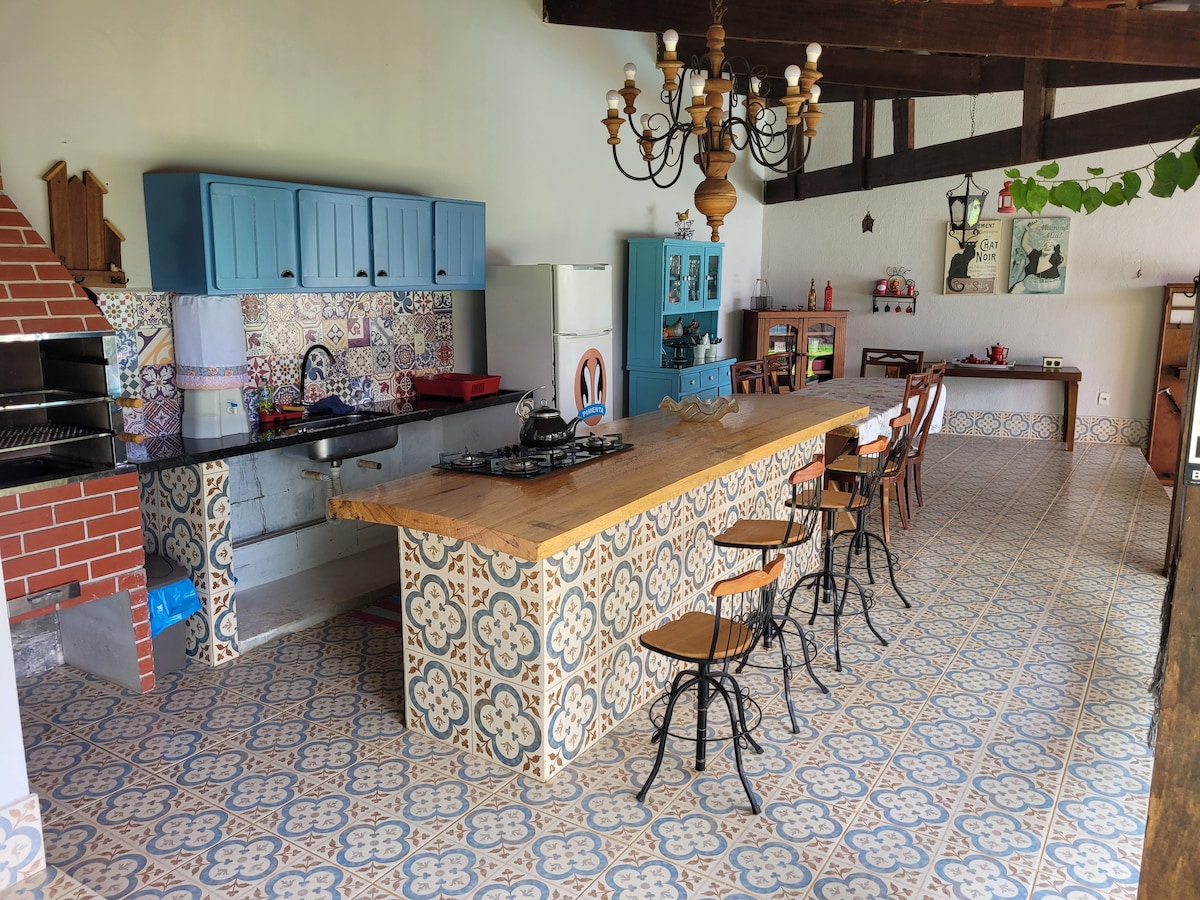 Planinska kuća na odličnoj lokaciji u centru Čapada dos Guimarães Sa velikim i udobnim balkonom, kuhinjom opremljenom svim osnovnim priborom, udobno primamo 8 osoba . Sve sobe imaju posteljinu .