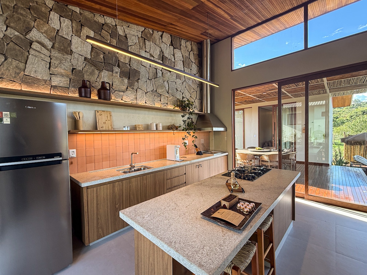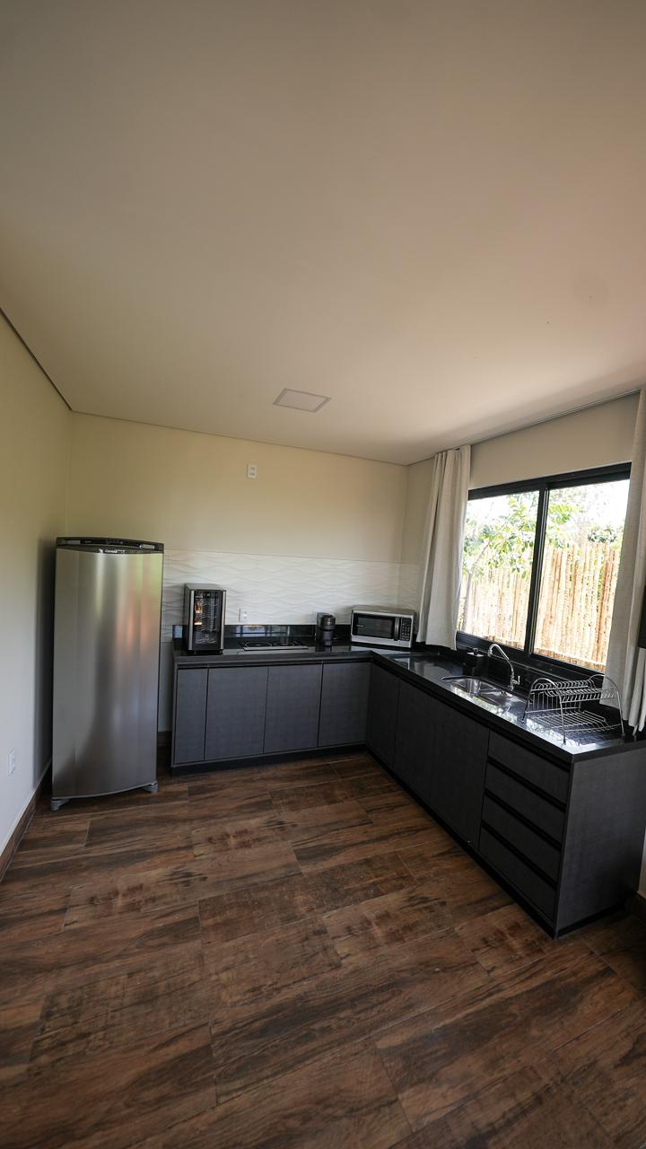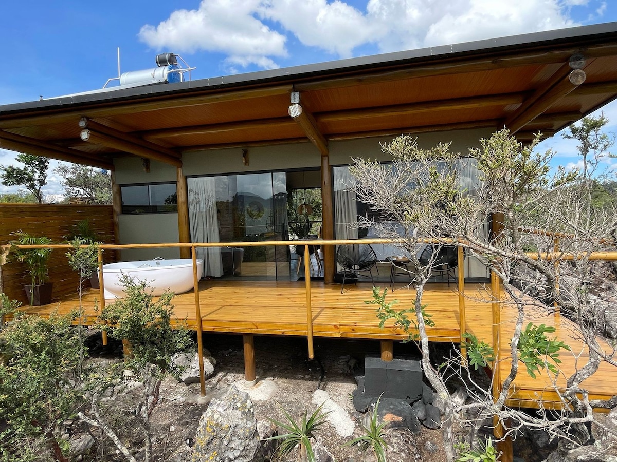 Naša planinska kuća je u potpunosti integrisana sa prirodom. Ima velike staklene okvire i besplatan pogled na Cerrado i planine, pružajući spektakularan pogled. Potpuno opremljena kuhinja, vrhunski krevet i posteljina za kupanje, odličan grijani tuš, ormar i krevet s hotelskim dušekom s 5 zvjezdica. Postoji balkon sa terasom duž cele dužine vikendice, sa stolom i stolicama napolju kako bi gosti mogli da uživaju u prirodi i zvezdanom nebu Čapade – dok pijuckaju vino u đakuziju!
