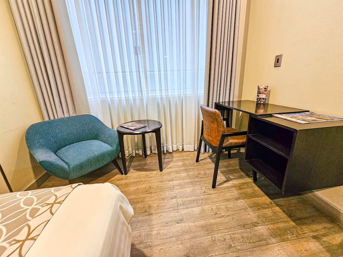 Uživajte u udobnosti hotelske sobe u ekskluzivnom Hupermallu u srcu Kočabambe. Sa direktnim pristupom prodavnicama, bioskopu, teretani i raznovrsnom trgu sa hranom, bićete okruženi najboljom atmosferom u gradu. Na pješačkoj udaljenosti, otkrijte kafiće i restorane za svačiji ukus. Idealno za one koji traže udobnost i praktičnost na najboljoj lokaciji u Kočabambi. Usluga je dostupna uz doplatu: * Doručak 70 B/dan * Dodatno čišćenje 50 bs/čišćenje * Parking 25 bs/dan