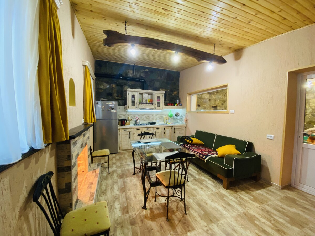 Dobro došli u našu šarmantnu drvenu seosku kuću, gdje se rustikalno susreće sa udobnošću! Smješteno usred visokih planina Kavkaza, ovo utočište nudi udoban odmor sa modernim sadržajima. Uronite u prirodu na privatnoj terasi ili se opustite uz mir i udobnost. Savršeno za romantični odmor ili miran odmor. Doživite spokoj sa stilom – rezervišite smještaj odmah! Naša kuća se nalazi u srcu Tianetija - starog udobnog grada udaljenog 45 minuta od Tbilisija.