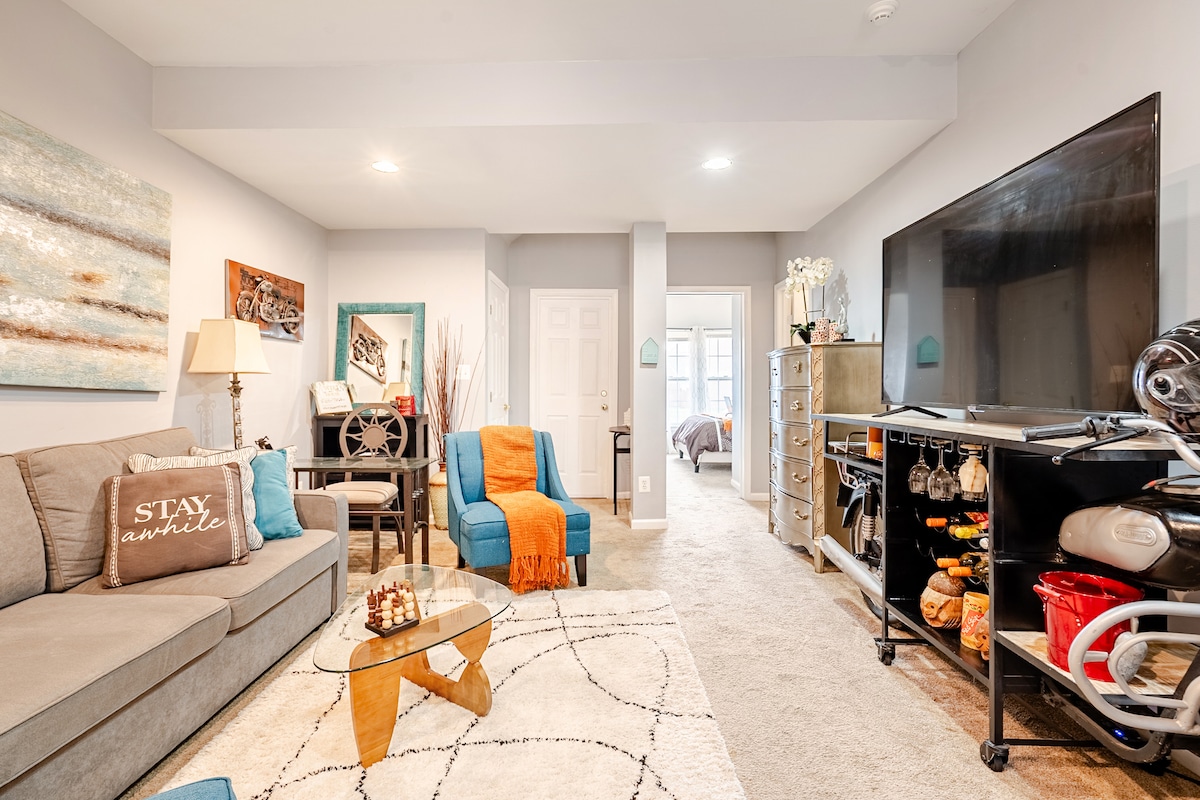Udoban privatni apartman za dvije osobe sa čajnom kuhinjom, kupatilom sa kadom i tušem, mašinom za pranje i sušenje veša, Wi-Fi mrežom, radnim prostorom, bilijarskim stolom i privatnim ulazom. Rezervišite jedno noćenje do 14 dana; produženja su dostupna na zahtjev i uz odobrenje domaćina. Samo 15 minuta do Nacionalne luke, 30 minuta do Vašingtona, 20 minuta do atrakcija u Virdžiniji i 90 minuta do Baltimora. Savršeno za parove, putnike ili ljude koji rade na daljinu, a traže udobnost i praktičnost. Rezervišite svoj boravak već danas, svoj drugi dom