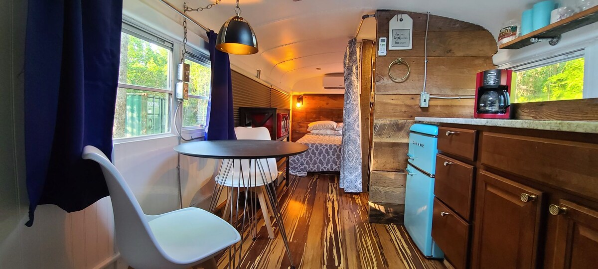 Uživajte u starinskom i modernom šarmu ovog potpuno renoviranog školskog autobusa iz 1989. godine koji se nalazi na 20 hektara šume. Dok uživate u predivnoj zemlji, u blizini se nalaze frizbi golf, kukuruzna rupa i ognjište. Autobus je udaljen 30 minuta do centra Čarlstona ili plaže Edisto i 45 minuta do drugih plaža. Kućni ljubimci su u redu uz dodatnu naknadu.