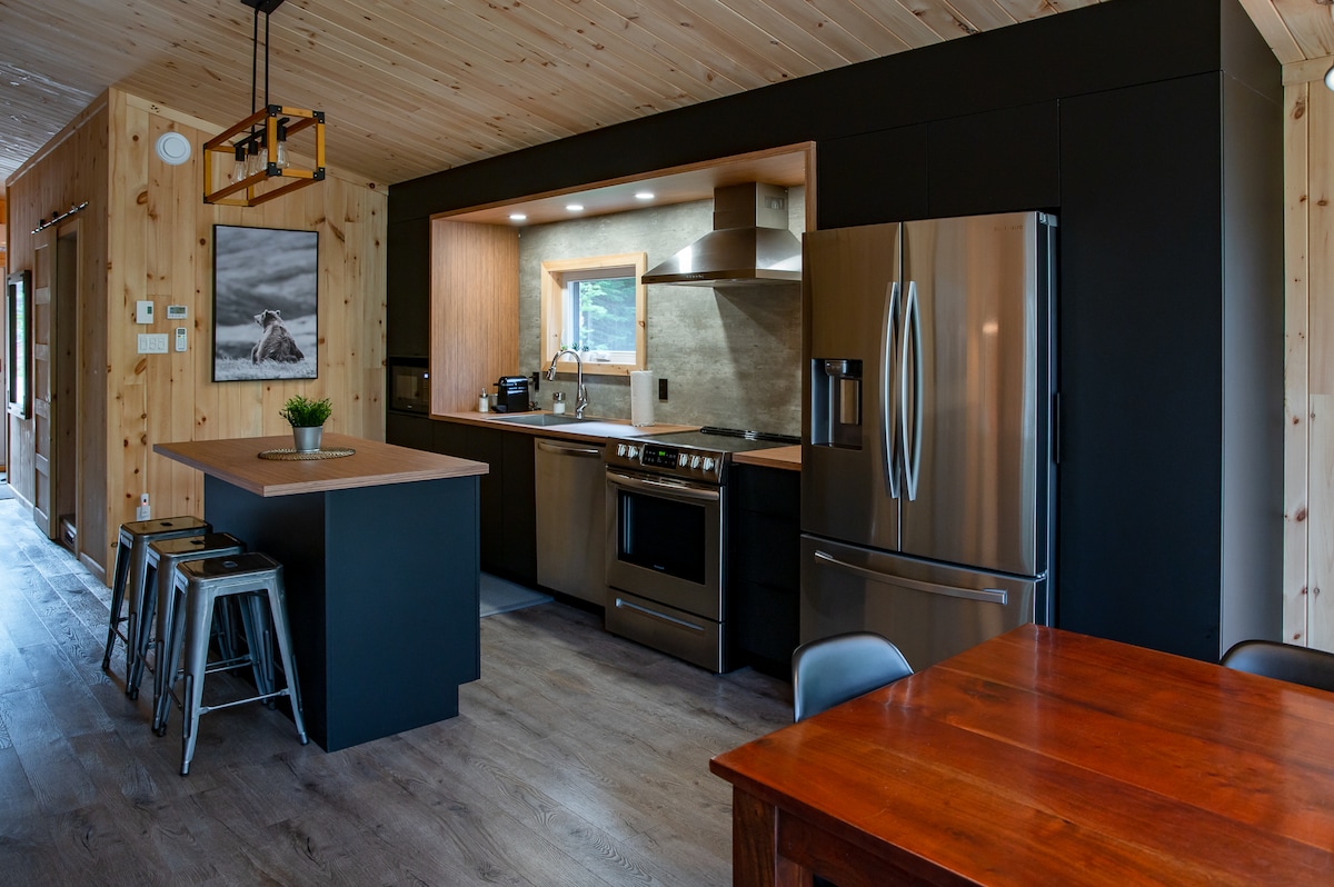 Kvarc je moderna mikro-kuća smještena na vrhu planine, osmišljena da vam pruži panoramski pogled na okolne planine i doline. Otkrijte ovo skriveno blago u kanadskoj borealnoj šumi, kombinujući udobnost i funkcionalnost u svim godišnjim dobima! Uživajte na otvorenom opuštajući se u hidromasažnoj kadi koja je dostupna u bilo koje doba godine. Nezaboravno iskustvo samo 30 minuta od mitskog grada Kvebeka, koji je na Uneskovom spisku svjetske baštine.